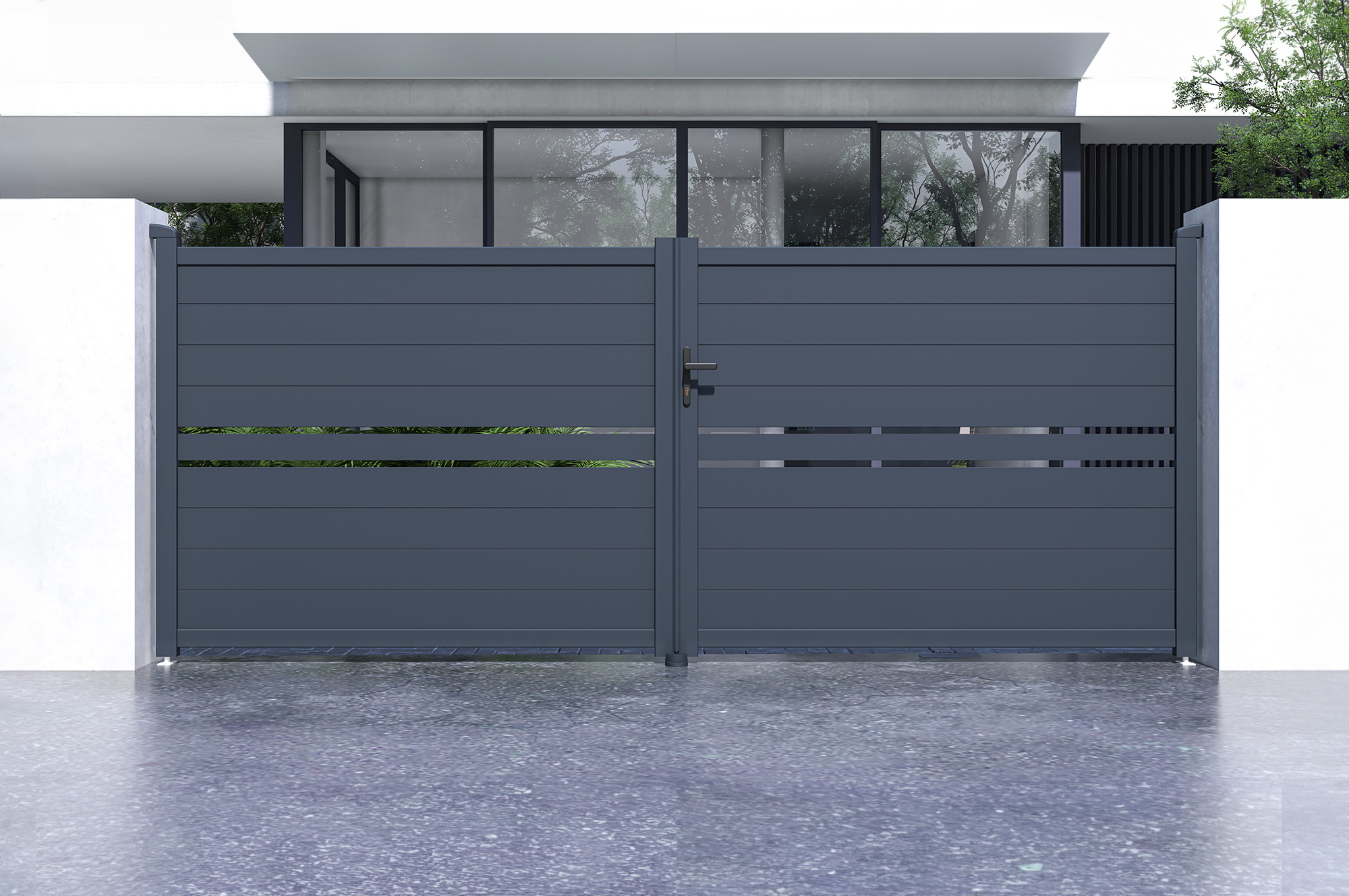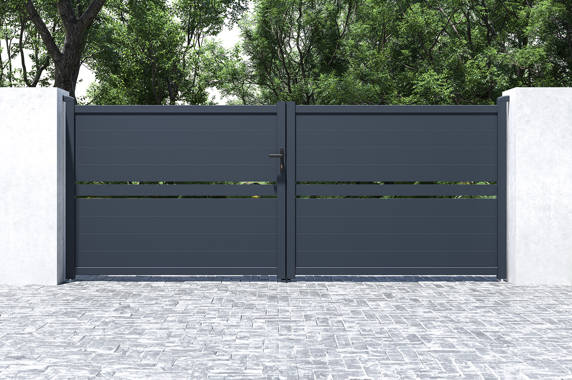 Sa conception pleine en aluminium fait de ce portail double battant un modèle idéal pour protéger votre propriété des regards indiscrets et bénéficier ainsi de la plus grande intimité.