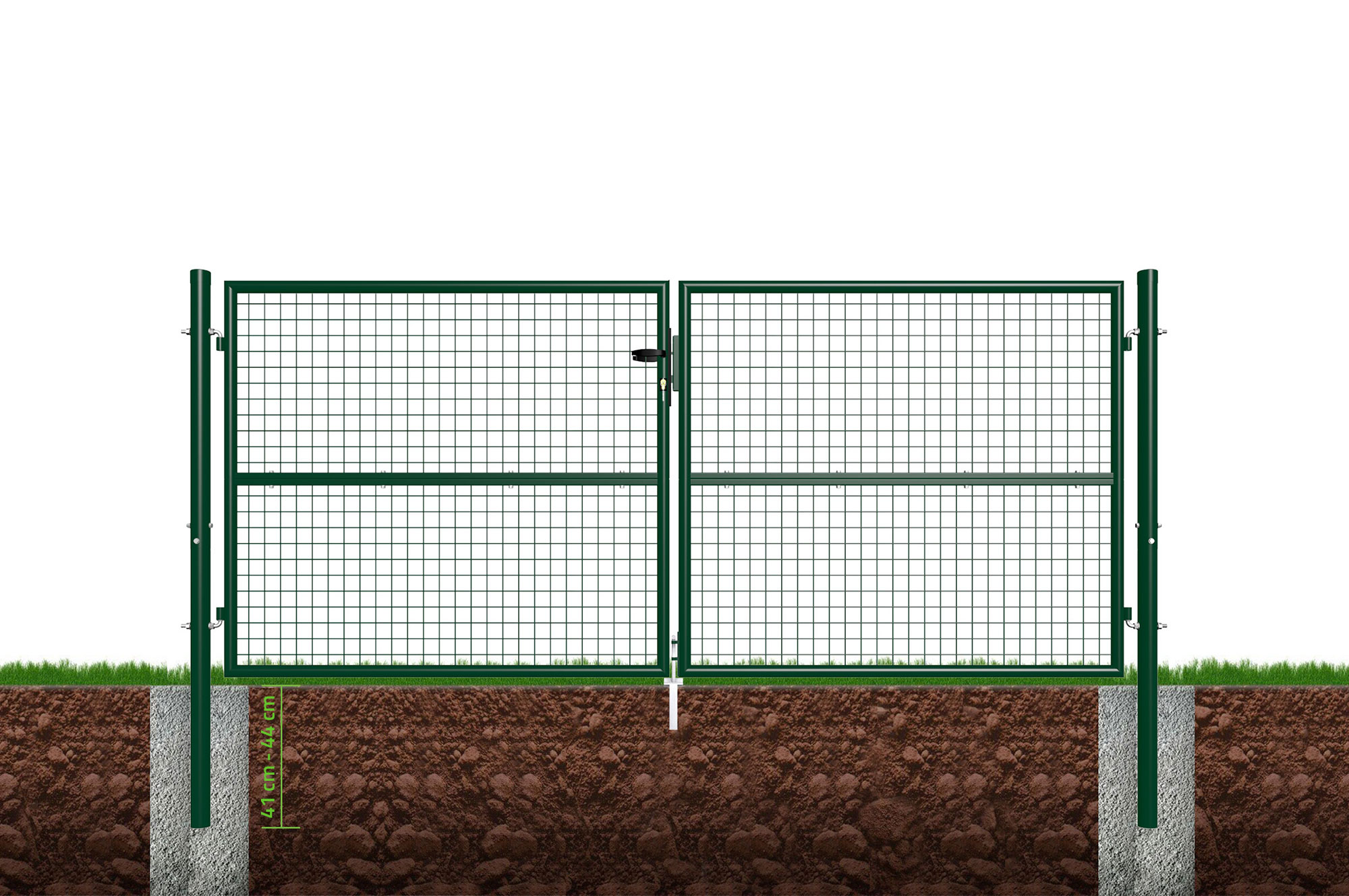 Portail battant grillagé 3m OLGA 300B130 VERT, avec poignée, serrure et clé
