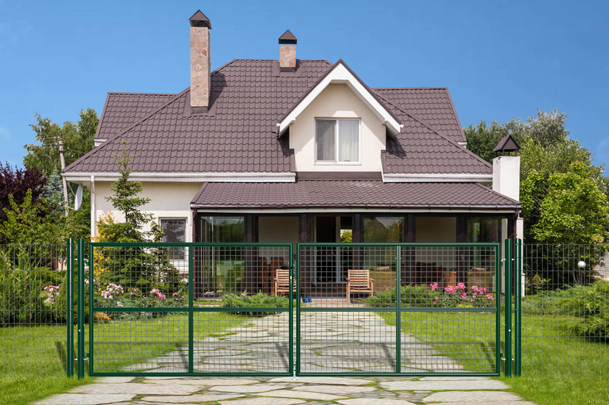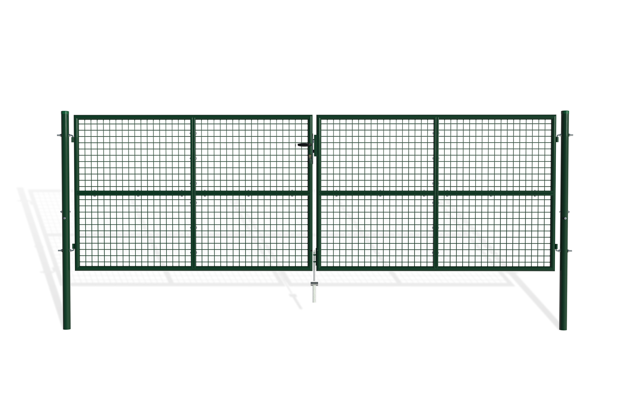 Portail battant grillagé 4m OLGA 400B130 VERT, avec poignée, serrure et clé
