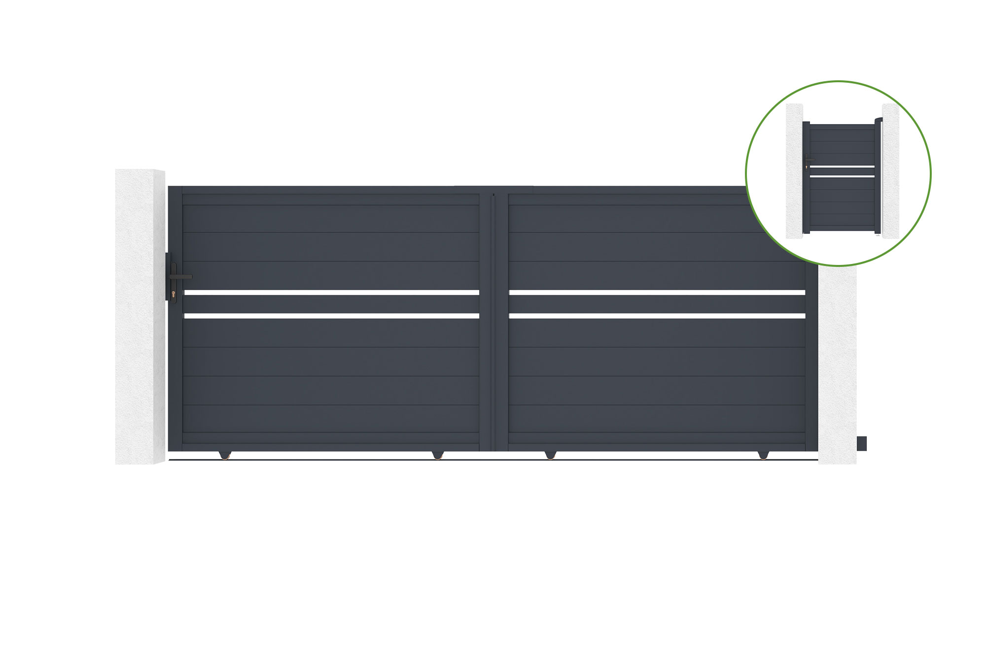 Portail coulissant 3,5m CIMONE H.140cm alu + portillon CIMONE H140 GRIS