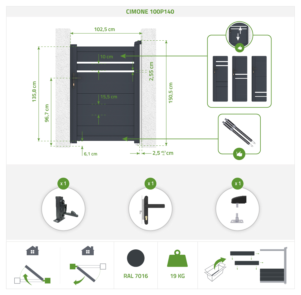 Portillon alu CIMONE gris