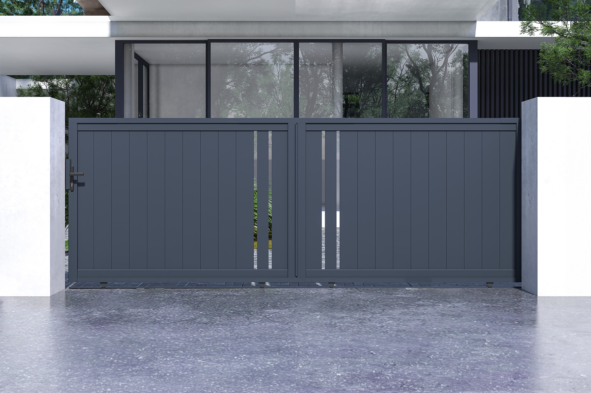 Portail coulissant 4m GIONA H.140cm alu gris + Portillon 1M CIMONE H.140cm alu