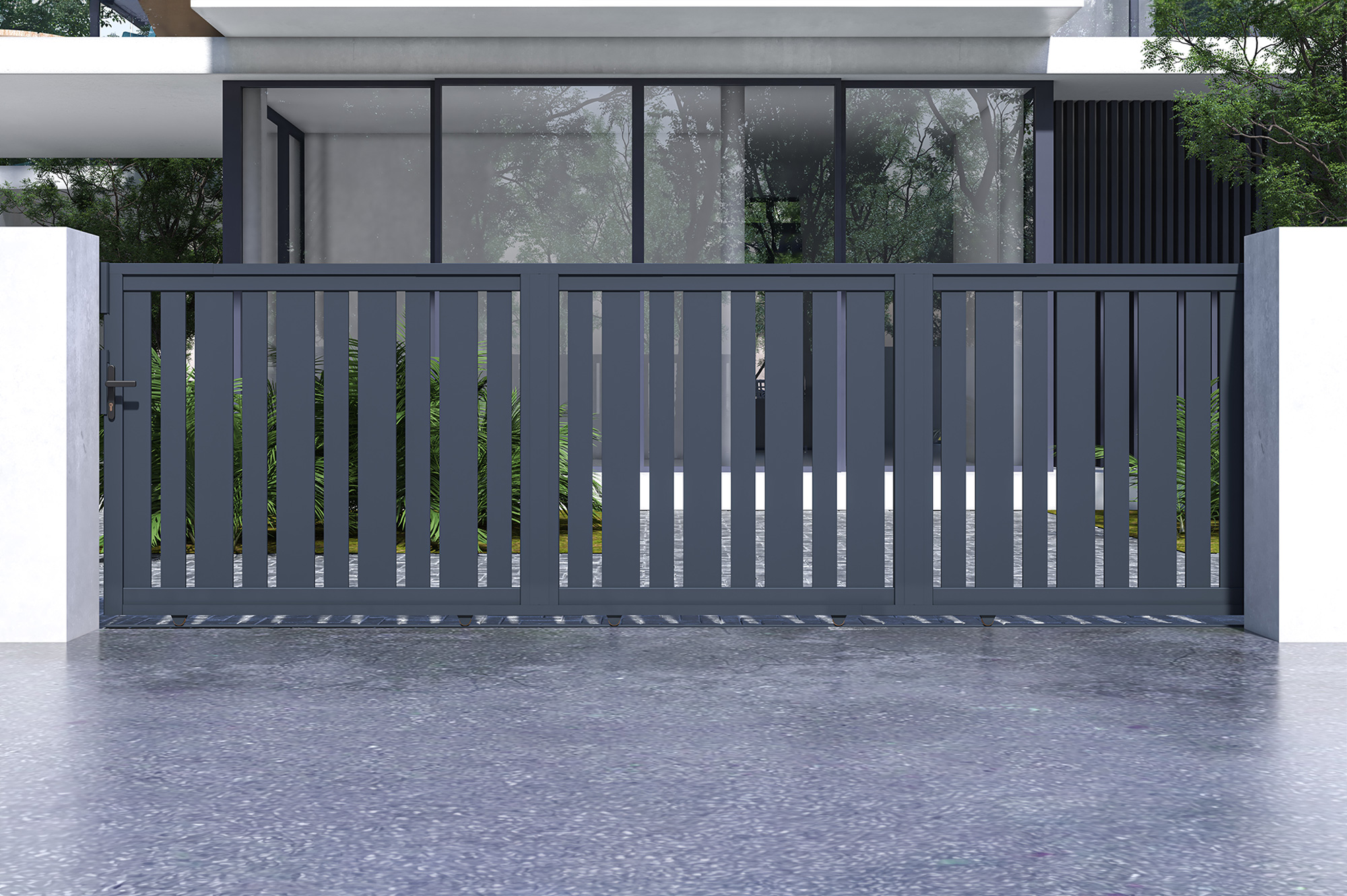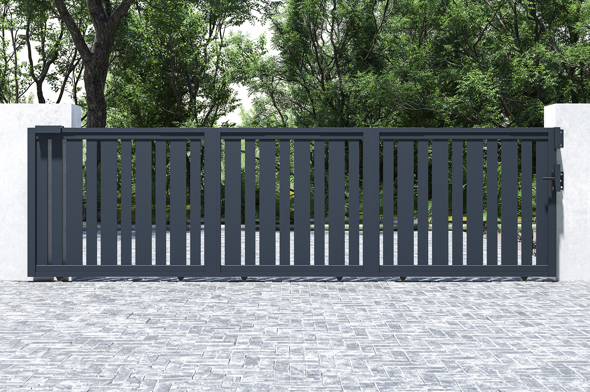 Optez pour le portail coulissant VEYMONT XL avec son design peu commun et faites de votre entrée un espace unique combinant à la perfection élégance et modernité
