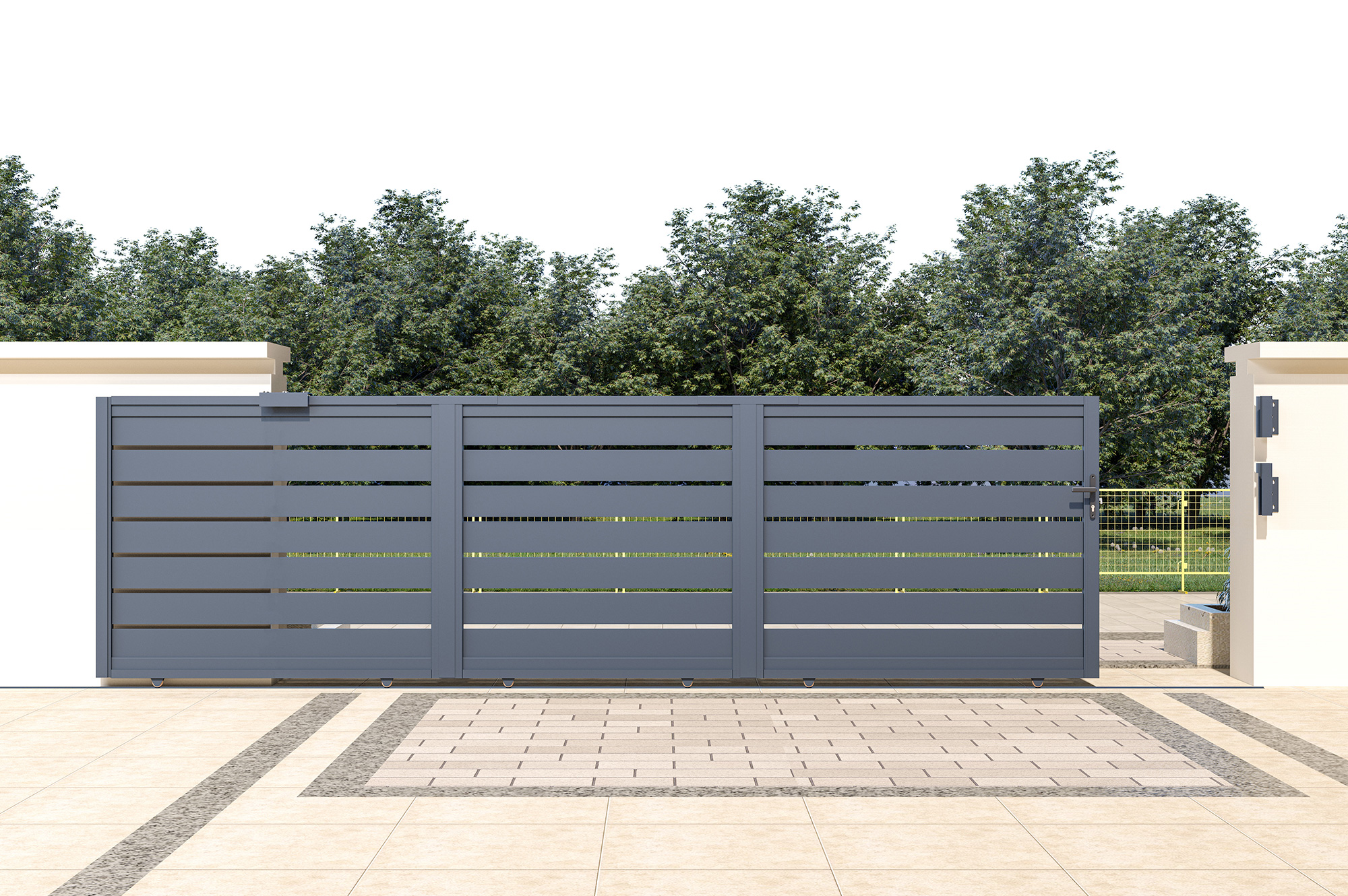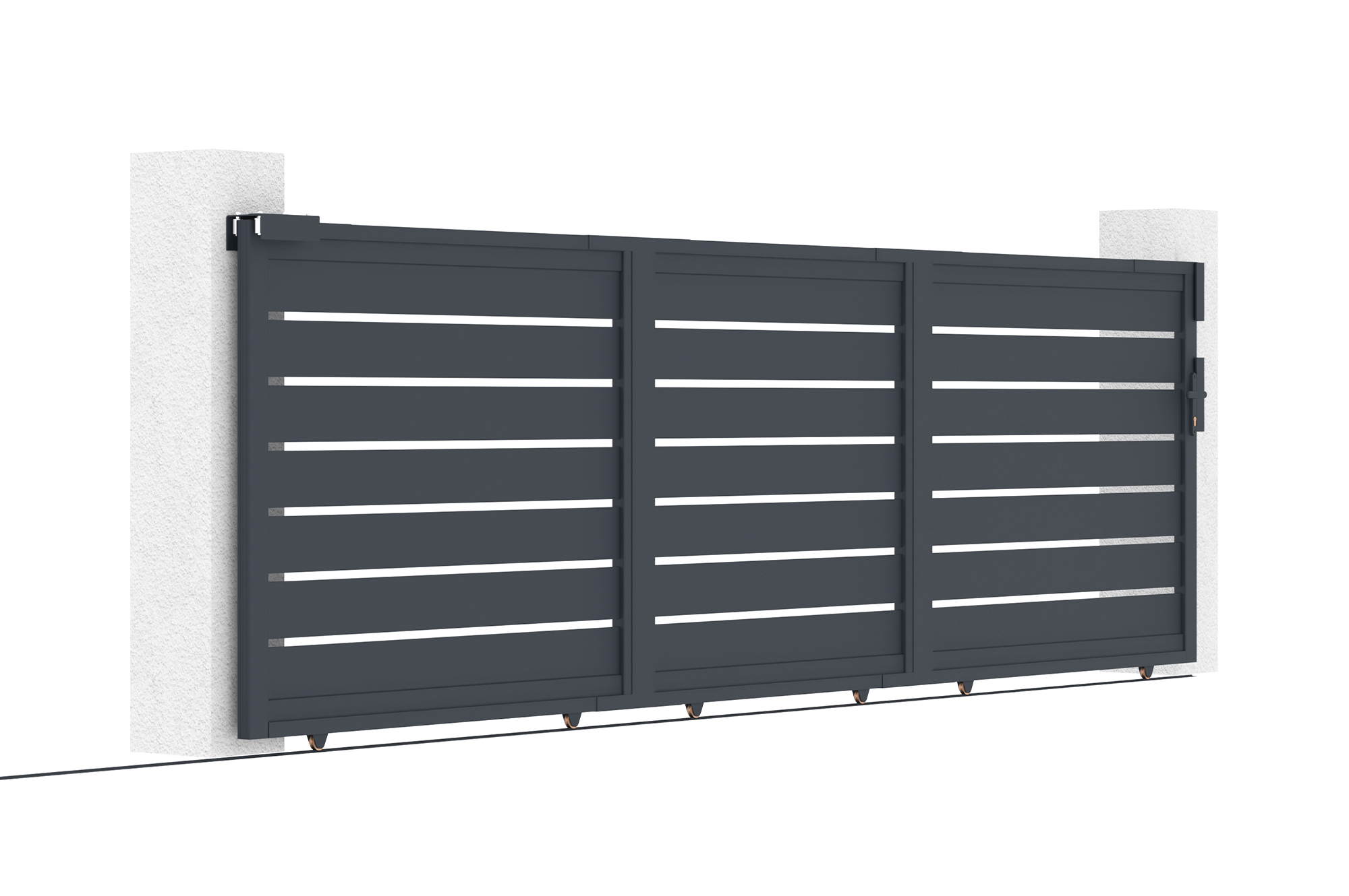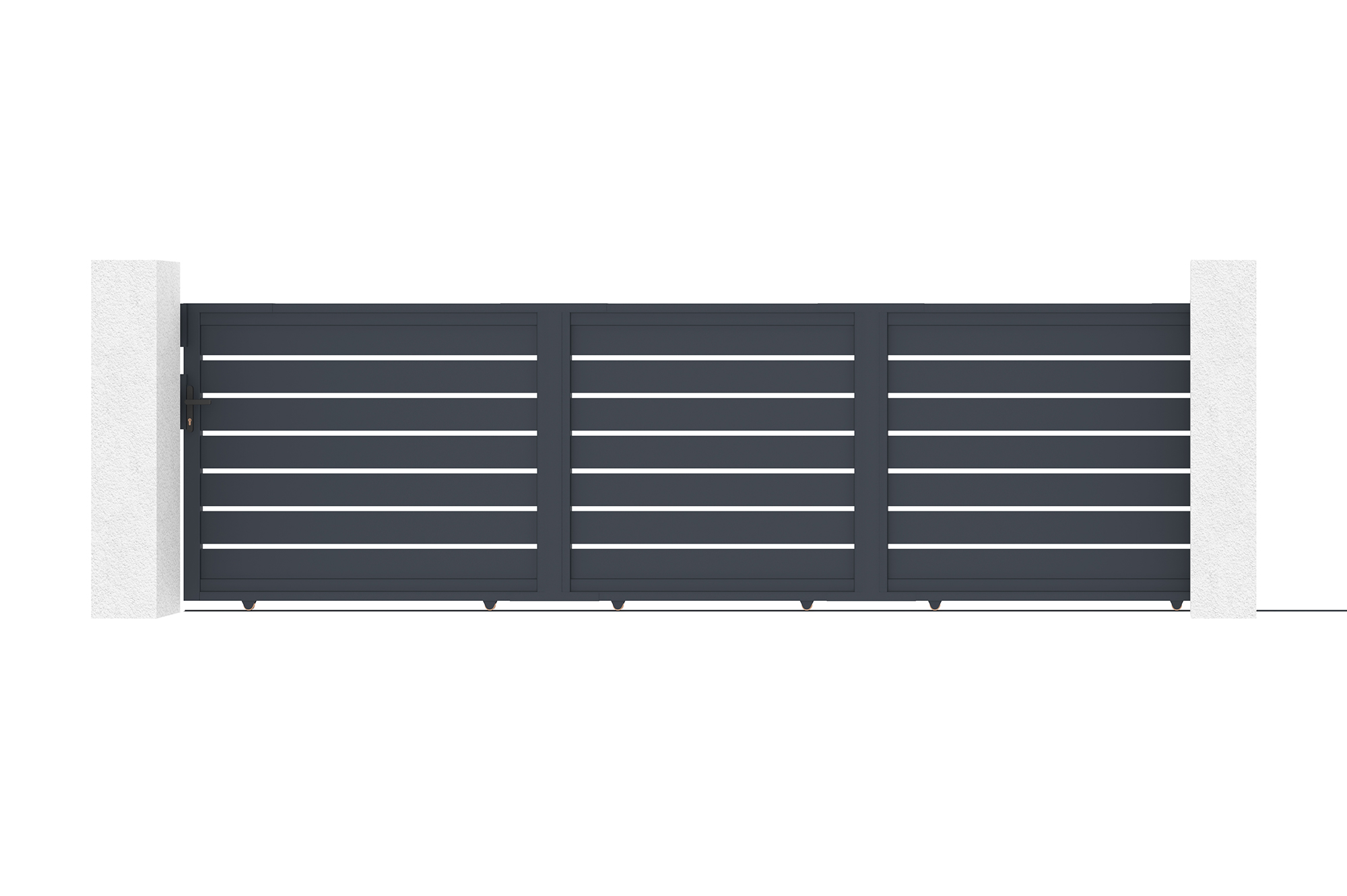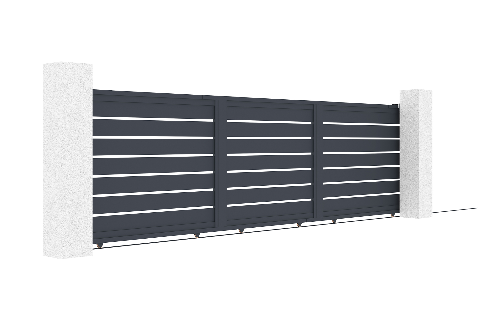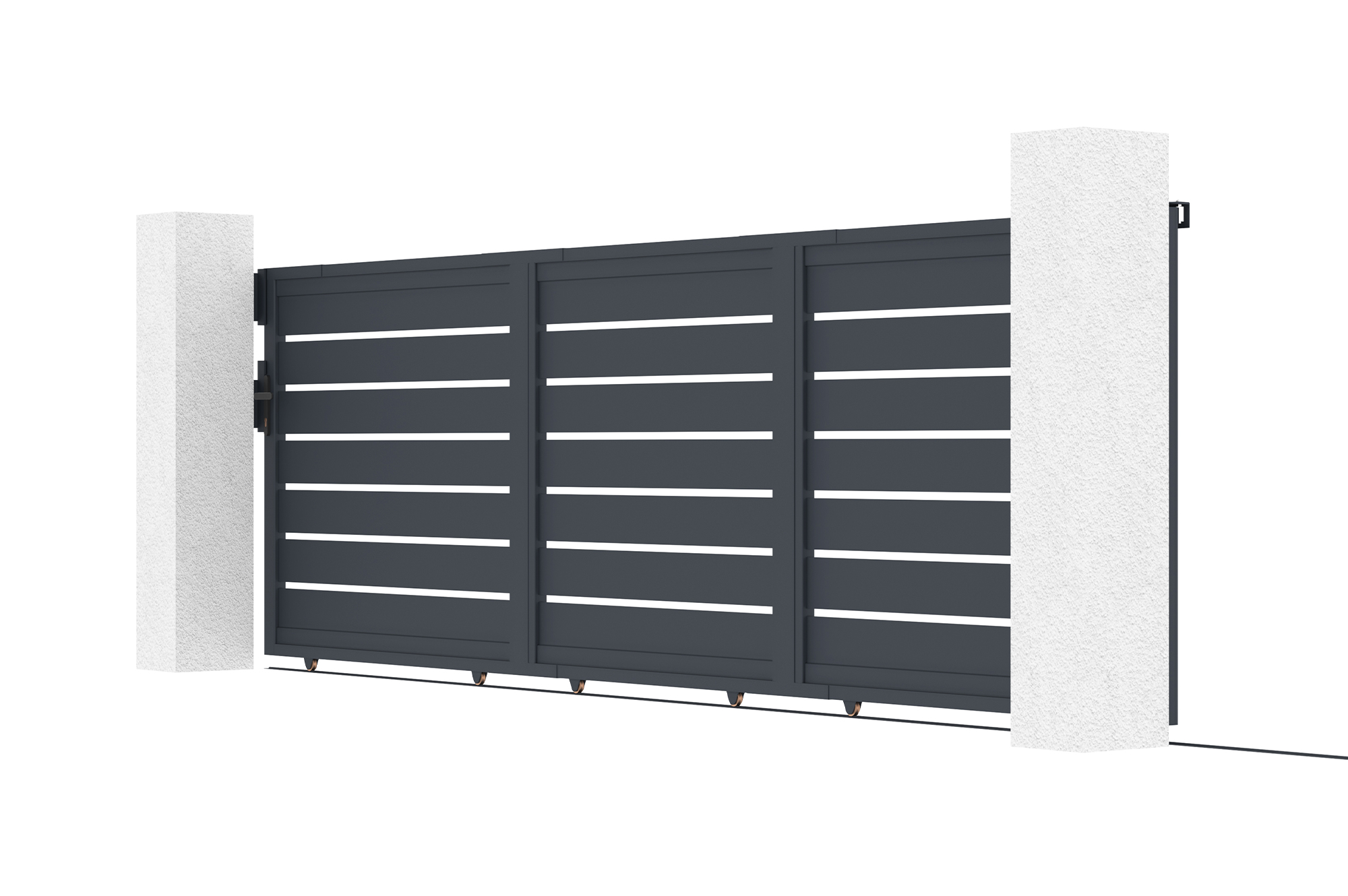 Si votre installation requiert des piliers, nous proposons des packs promotionnels comprenant un portail coulissant XL de votre choix, accompagné de deux poteaux en aluminium adaptés au portail d’entrée choisi.