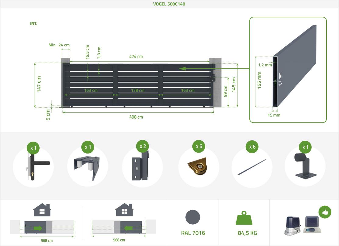 | Libellé | Portail coulissant 5m VOGEL H.140cm aluminium |
