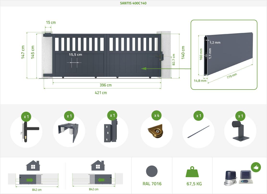 | Libellé | Portail coulissant électrique 4m SANTIS 400C140 + Motorisation TANKER C600 |