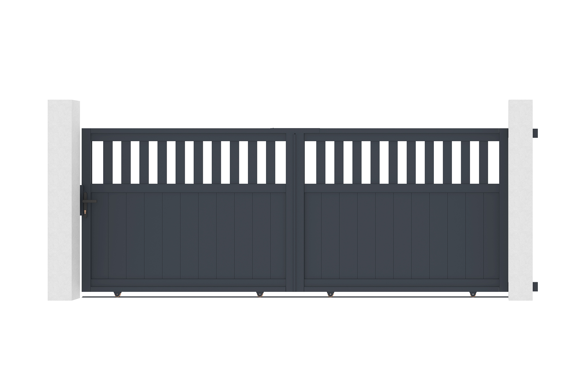 Le portail coulissant SANTIS au design sobre et classique est le compromis parfait entre portail ajouré et plein.