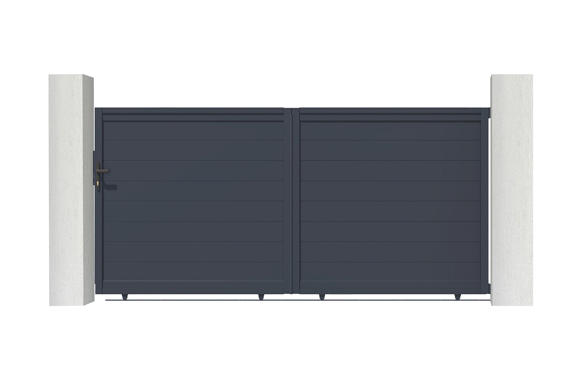 Portail coulissant plein EIGER en aluminium 3m x H. 140cm - Gris