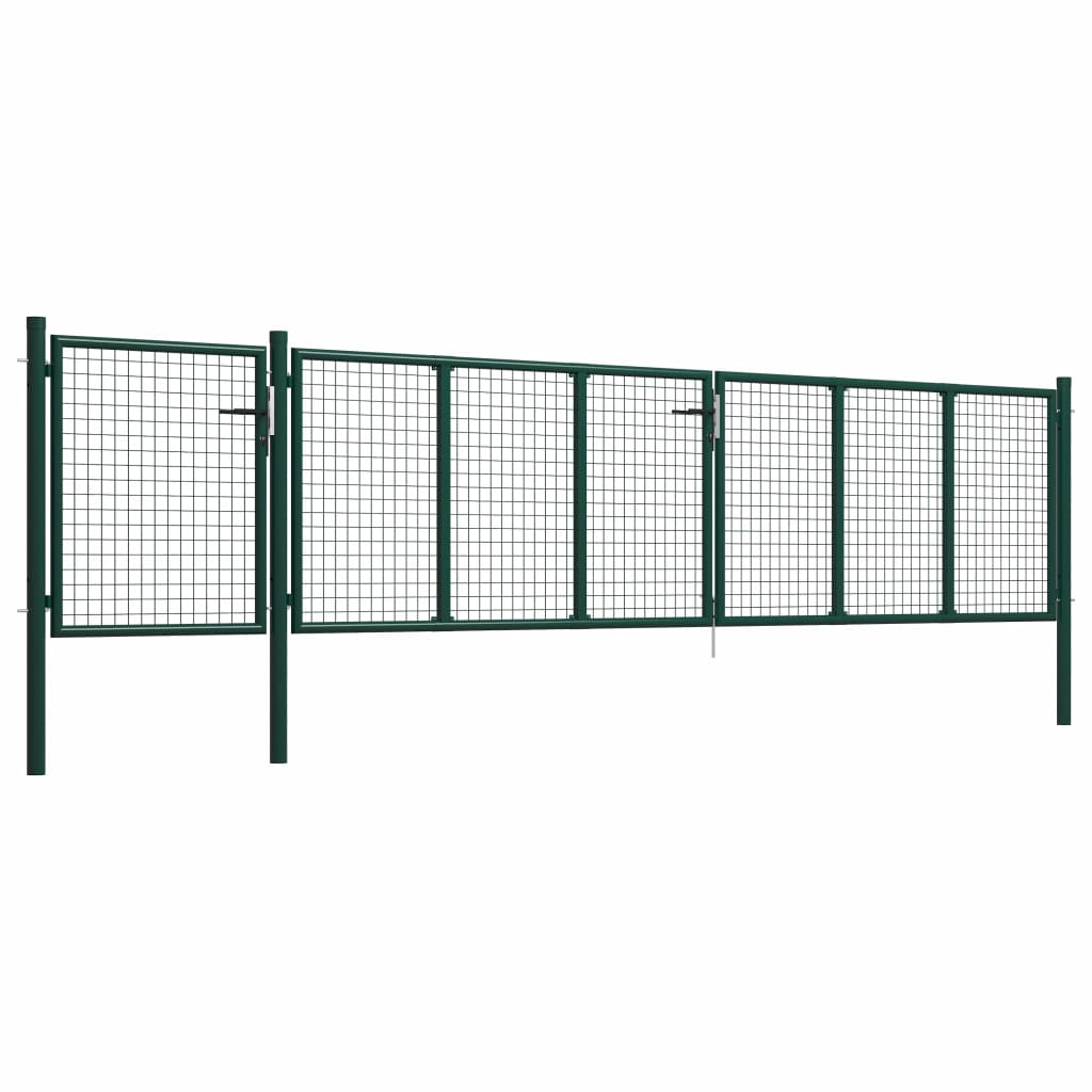Notre portail de clôture en acier sera un point d'entrée idéal pour la clôture autour de votre jardin ou patio. Cette clôture de jardin robuste et durable a été fabriquée en acier robuste. Elle est résistante à la rouille et à la corrosion et convient à une utilisation extérieure à long terme. Soudée avec des fils de mailles épaisses pour une rigidité accrue, notre porte de jardin vous apportera un degré de sécurité élevé tout en constituant une fabuleuse entrée sur votre propriété. La porte est livrée avec un jeu de serrure et 3 clés. Couleur : vert Matériau : Acier Dimensions totales : 500 x 125 cm (l x H) Hauteur du panneau : 75 cm Dimensions du poteau : 6 x 0,15 cm (diamètre x é) Taille de la maille : 5 x 5 cm (l x H) Un ensemble de serrure et poignée inclus