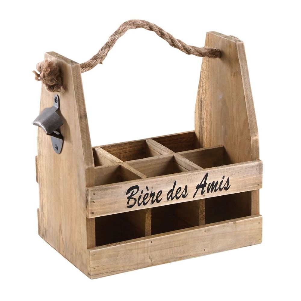 | Libellé | Porte 6 bouteilles de bières en bois avec décapsuleur 26 x 17 x 28 cm |