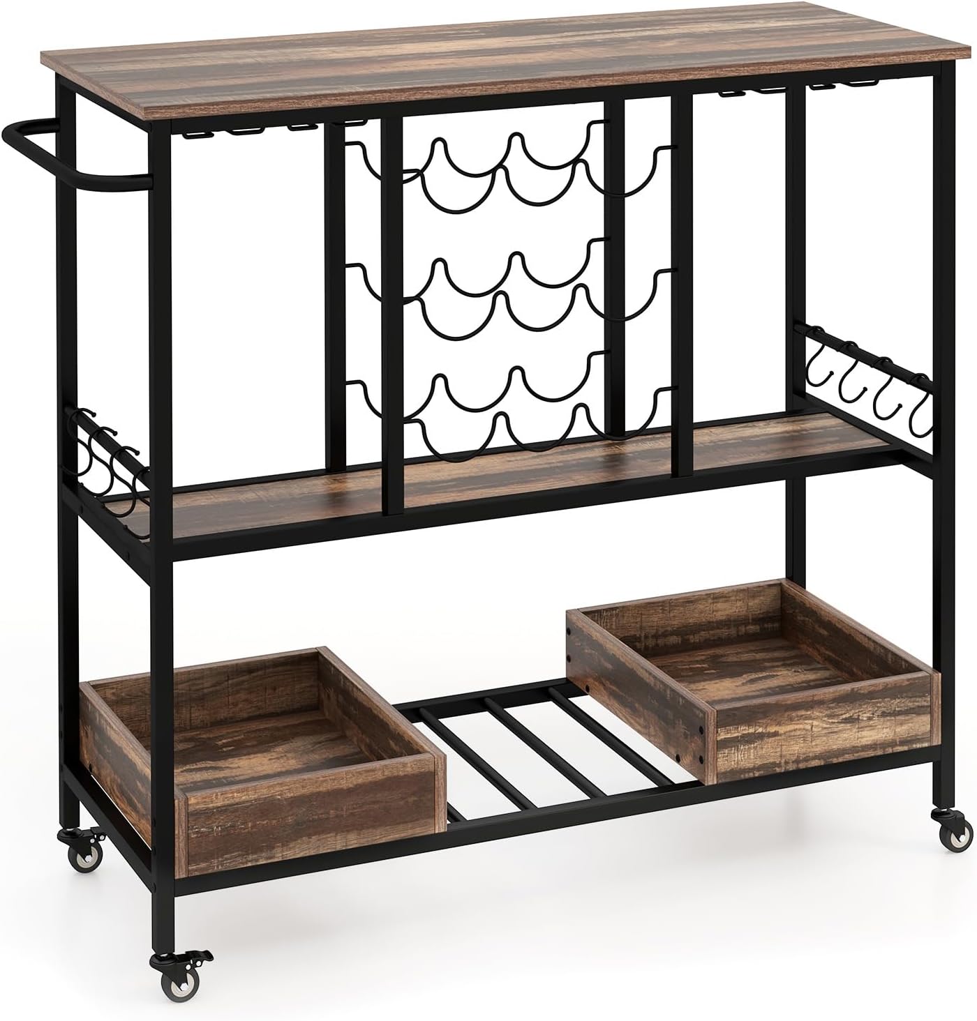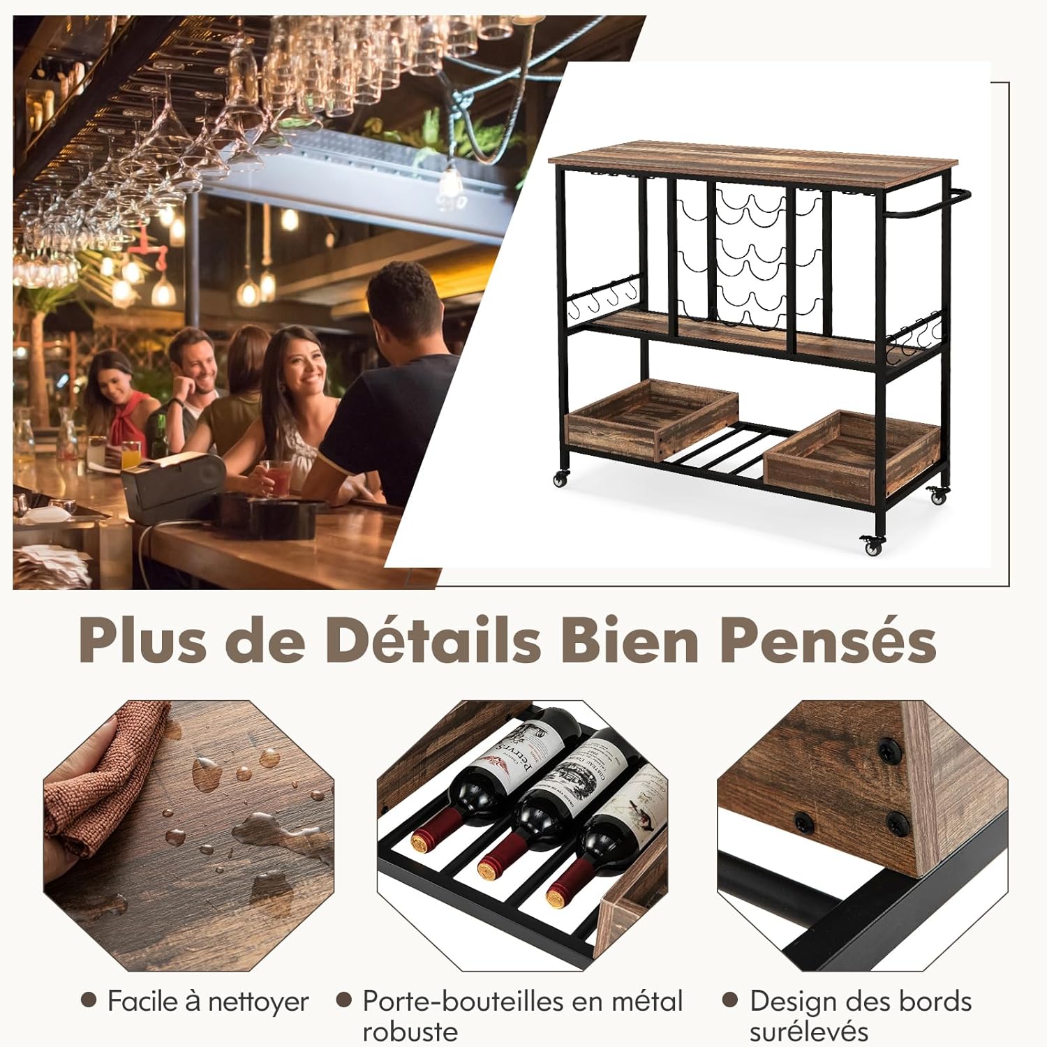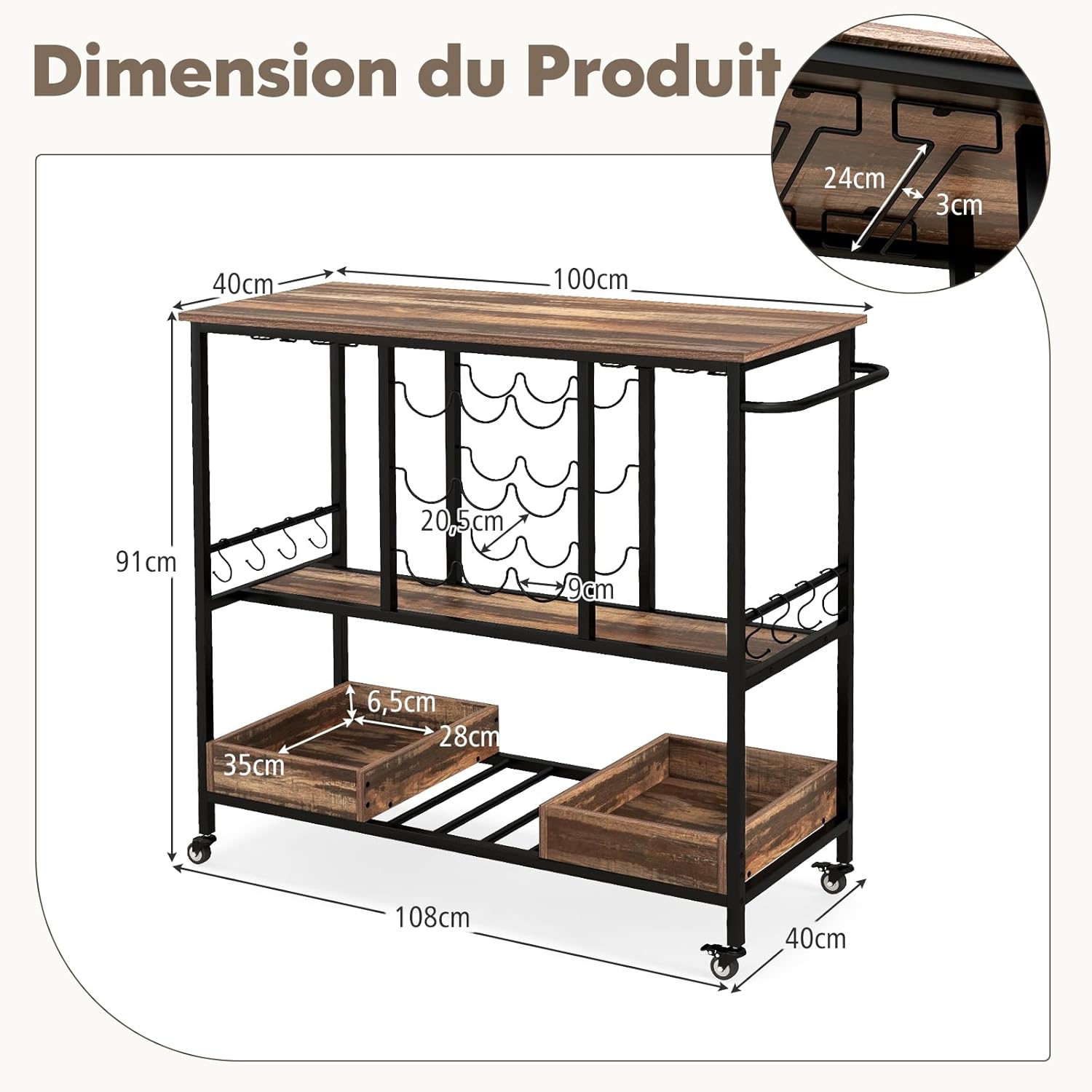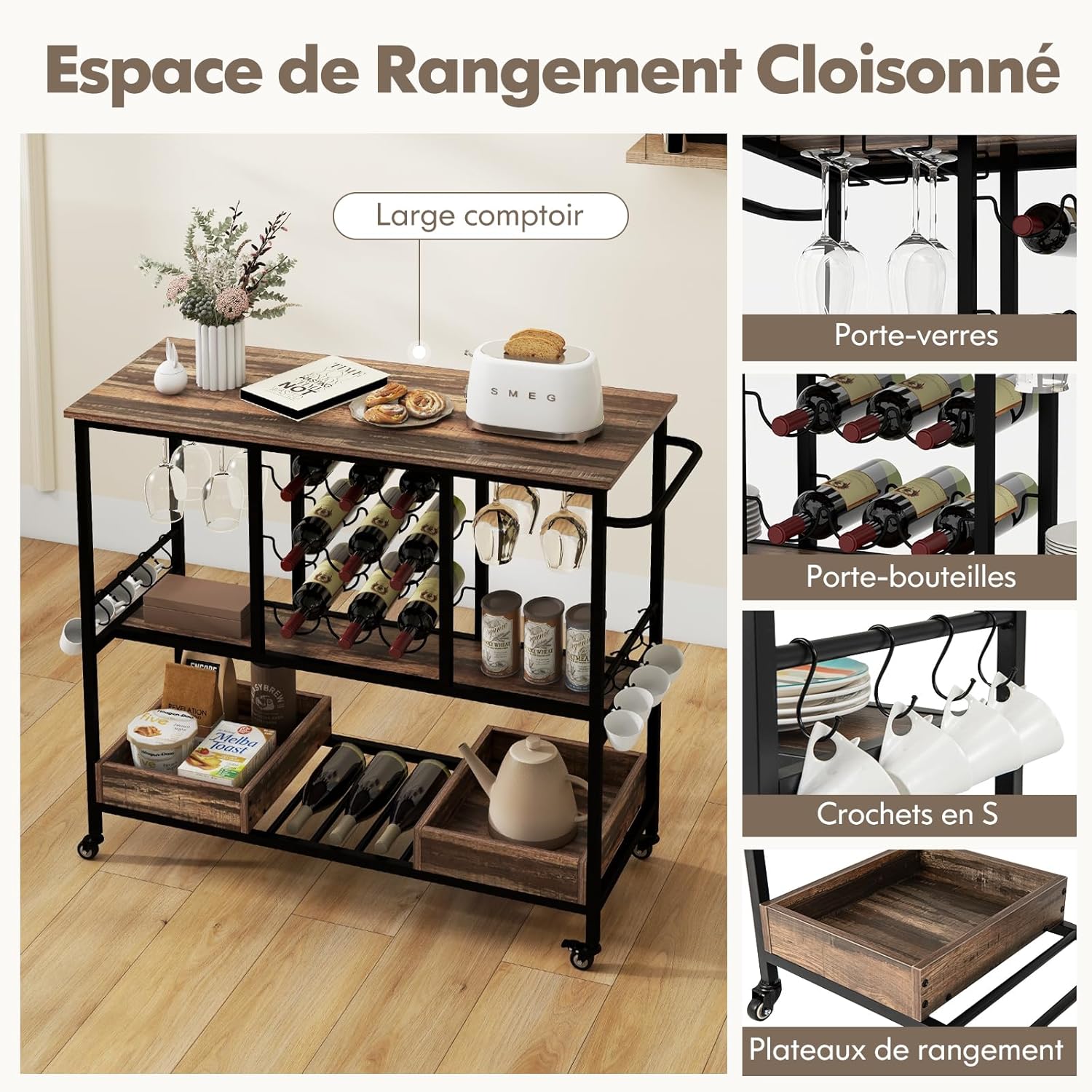 - Design Moderne et Large Application : Ce chariot à 3 niveaux ajoute une touche de charme moderne tout en offrant des solutions de stockage polyvalentes pour vos boissons préférées. Il est donc parfait pour la salle à manger, le salon ou le bar.
