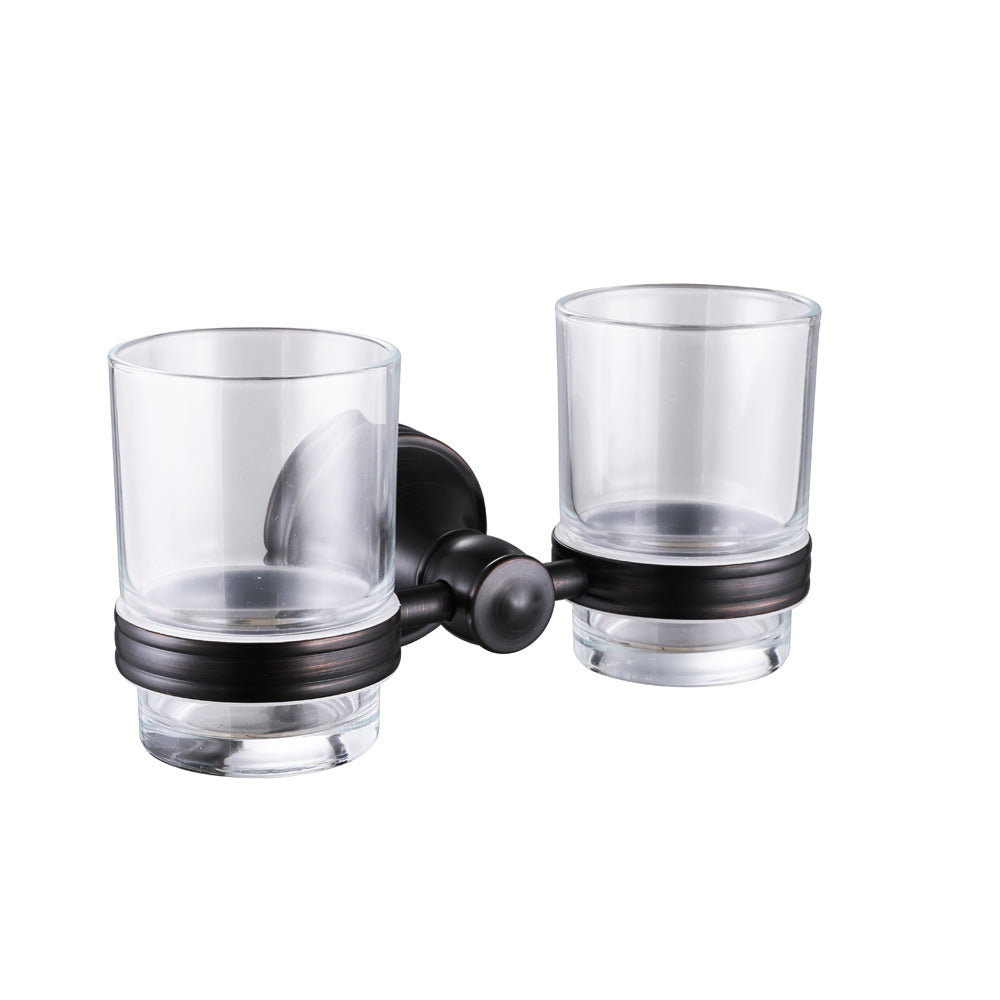 Porte brosse à dents double en laiton noir mat design, idéal pour compléter votre salle de bain avec goût. Possibilité d'avoir des couleurs assorties avec les autres articles de robinetterie et de douches.