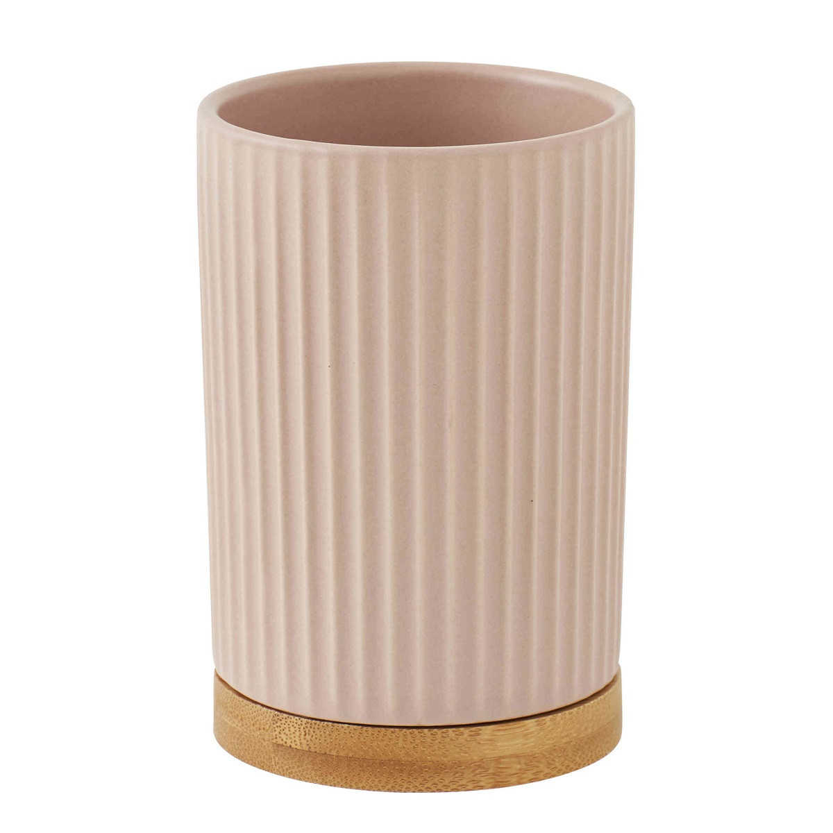Cette gamme est conçue pour transformer vos accessoires de salle de bains en objet de décoration. Ce gobelet est conçu en céramique avec un détail en bambou.