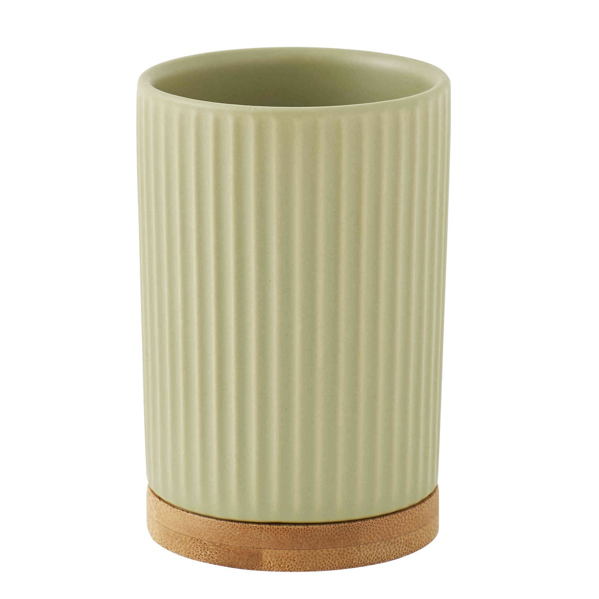 Cette gamme est conçue pour transformer vos accessoires de salle de bains en objet de décoration. Ce gobelet est conçu en céramique avec un détail en bambou.