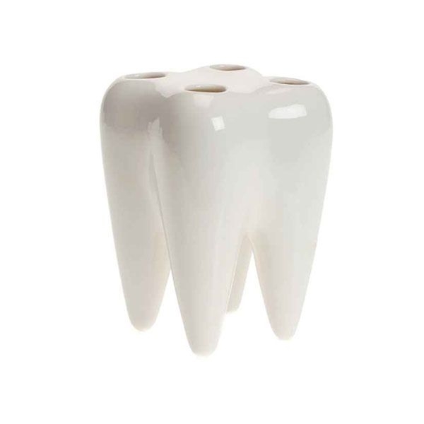 Ce porte brosse à dents est l'accessoire parfait pour rehausser la beauté de votre salle de bain. Il représente une molaire avec 4 trous pour garder 4 brosses à dents. C'est le cadeau parfait pour un dentiste.* Dimensions : 10 x 7 cm * Matière : plastique Fonctions : range brosse à dents Contenu : 1 porte brosses à dents molaire