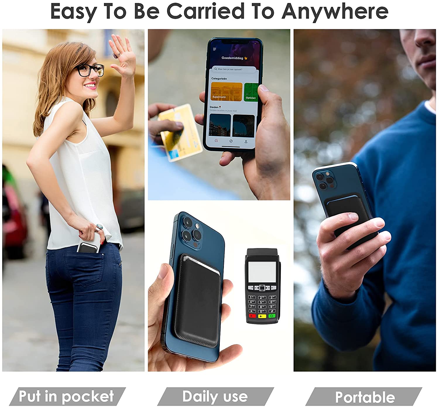 Compatible avec : iPhone 13 Pro Max/13 Pro/13/13 Mini, iPhone 12/12 Pro/12 Max/12 Mini (les autres téléphones doivent d'abord être équipés d'un étui magnétique pour que le porte-carte puisse être fixé)