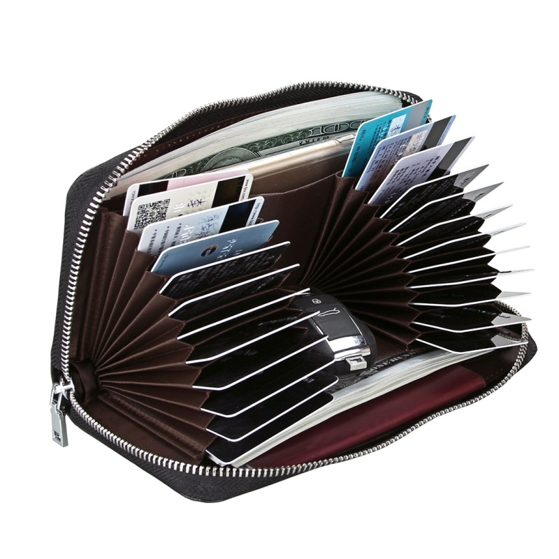 Il dispose d'emplacements et de compartiments assez larges pour y mettre des cartes grandes de tous genres. Sa taille convenable permet de le faire glisser aisément dans un sac. L'ouverture très grande du portefeuille le rend ergonomique. Il est facile d'y mettre toutes les cartes. Il se ferme grâce à la fermeture Éclair commode.