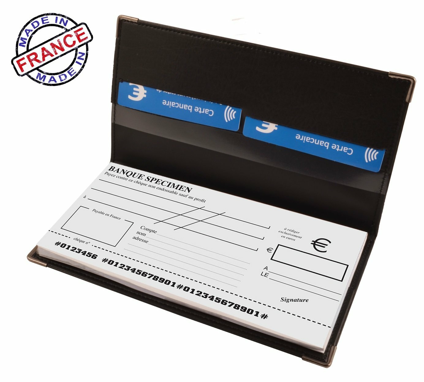 Libellé Porte chéquier noir simili cuir fabriqué en France