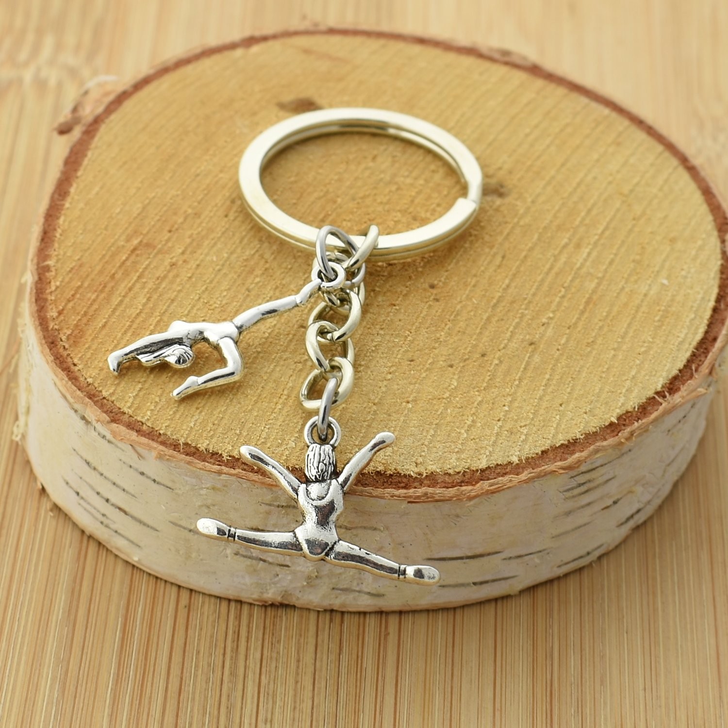 | Libellé | Porte-clés gymnaste femme figure gymnastique artistique argenté |