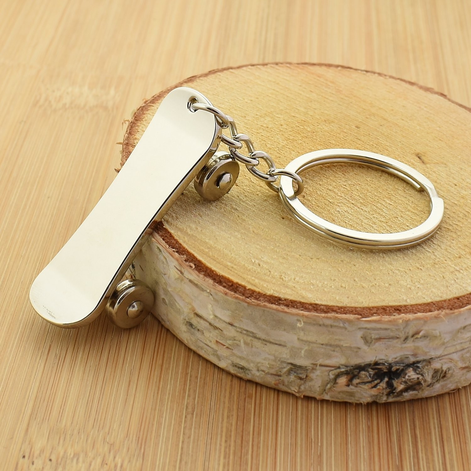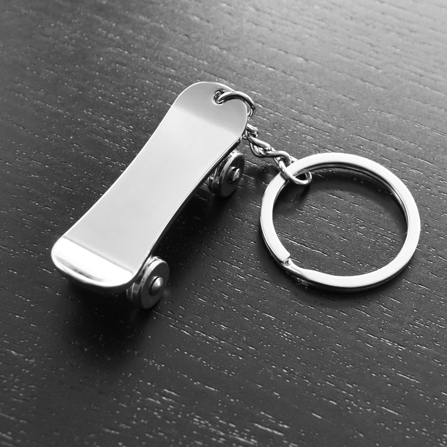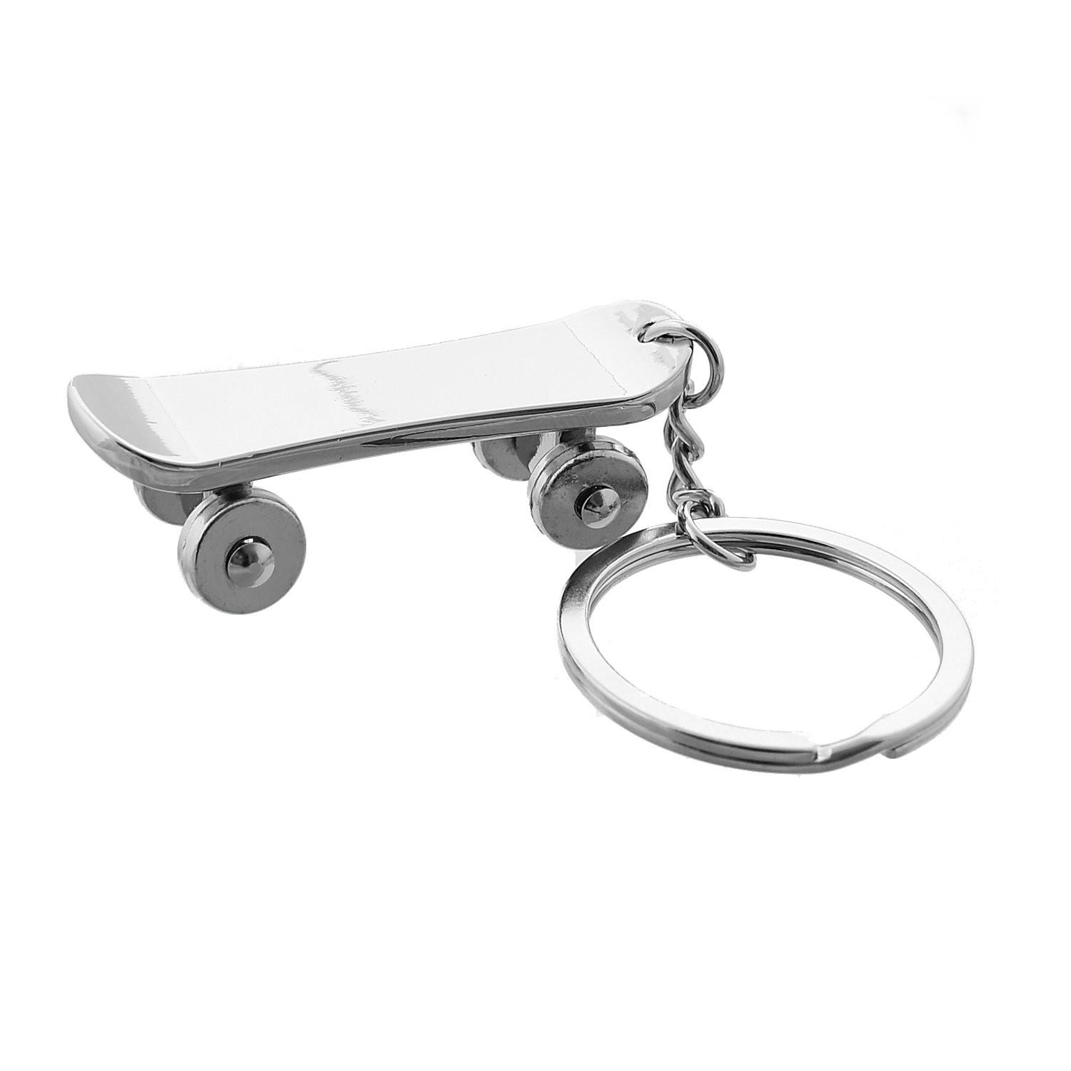 Porte-clés skateboard planche à roulettes argenté