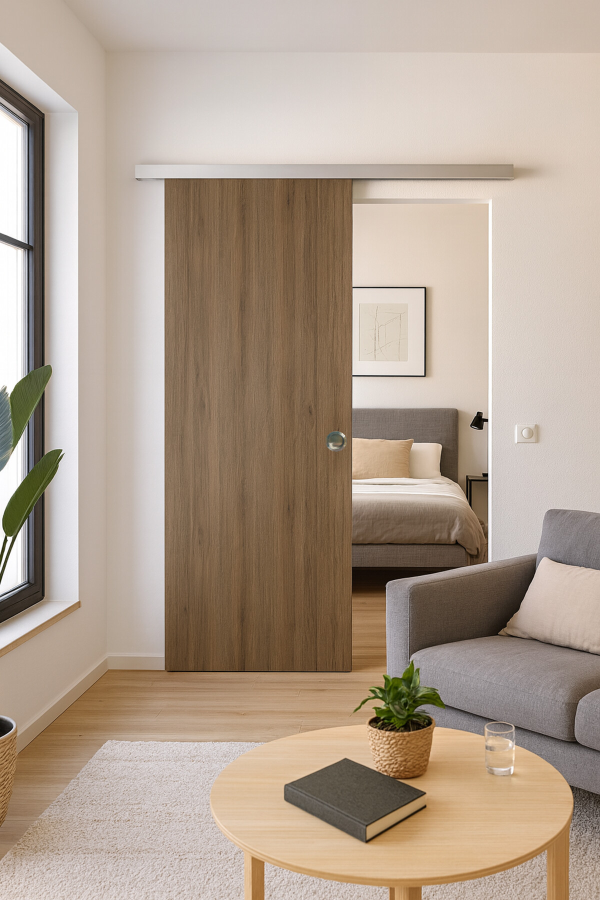 Porte Coulissante Light Walnut H204 X L83 Cm,rail Alu, Coquilles Gd Menuiseries