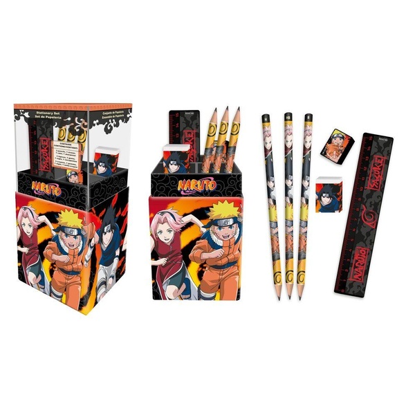 Porte-crayons + Set 6 pièces papéterie Naruto [Dimensions 8x20x8cm]
