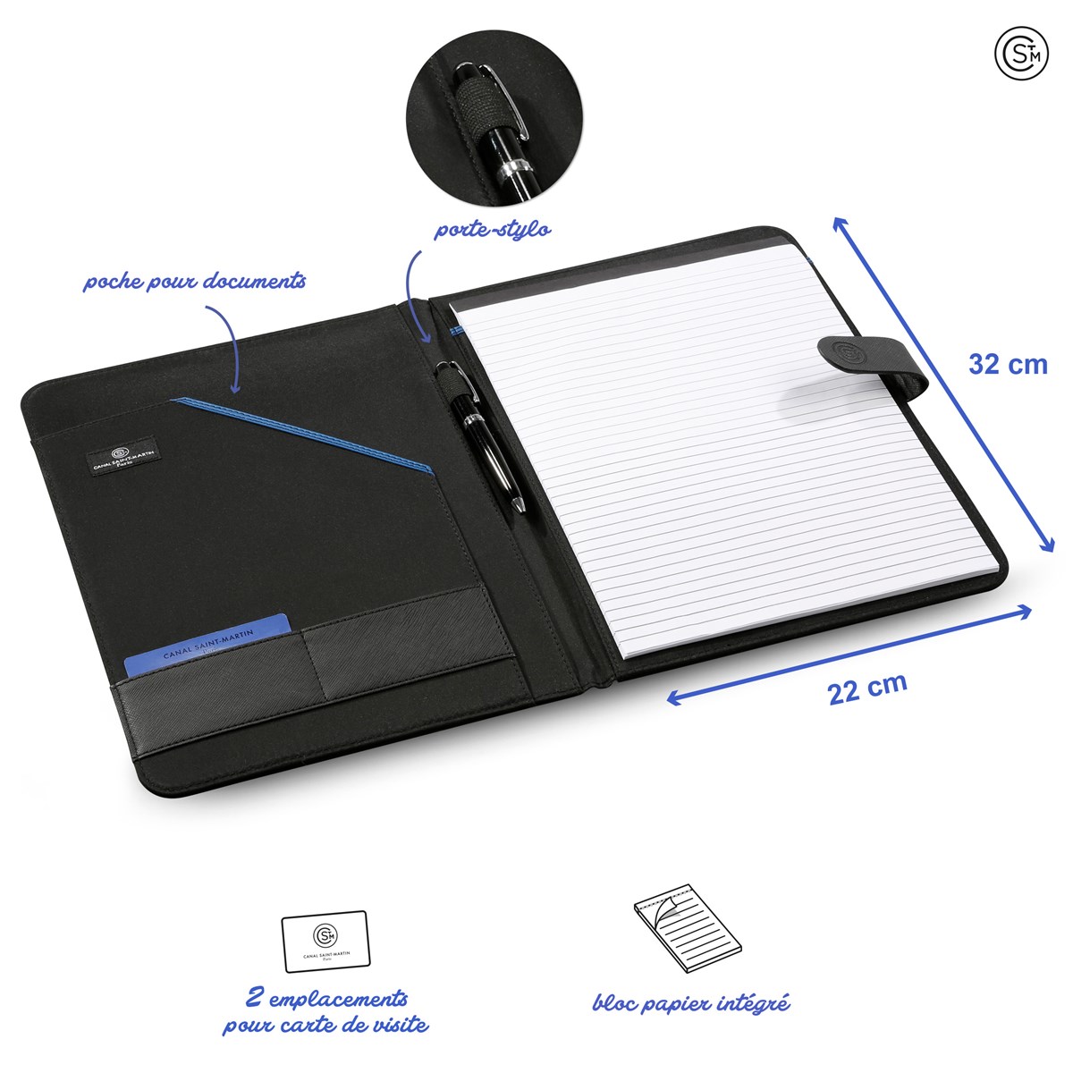 Porte document conférencier A4 avec bloc papier ligné intégré CANAL SAINT MARTIN