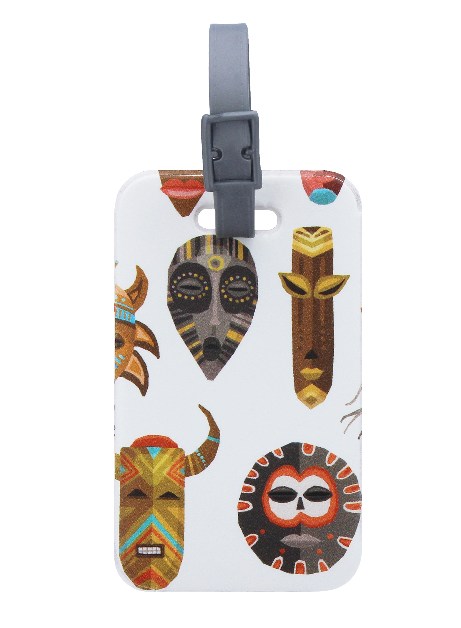 Libellé Porte étiquette de bagage masque africain fabriqué en France
