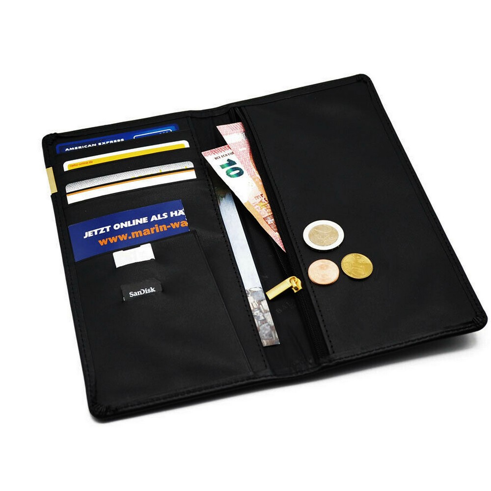 Ce porte feuille en cuir très complet vous suivra partout dans vos déplacements. Sur le côté droit un pochette avec fermeture Zip pour votre monnaie et vos billets . Sur le côté gauche emplacements pour cartes de crédit , cartes de visite et documents importants Idéal pour les voyages d'affaires. Dimensions fermé : 22.5 x 11.5 x 1.5 cm Vendu dans sa boite cadeau Balmain
