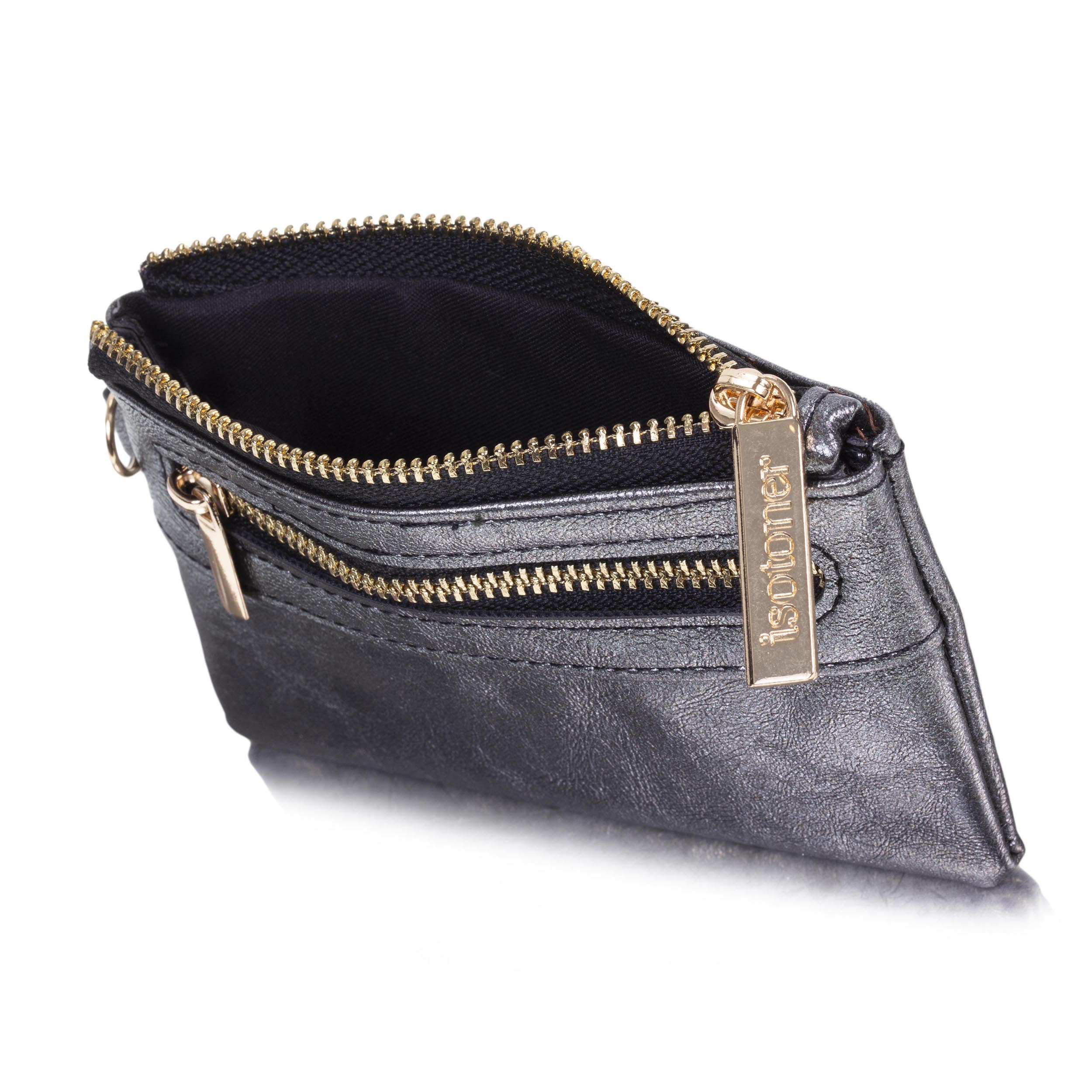 Ce porte monnaie femme zippé métallisé de couleur Noire fait partie de la nouvelle collection de petite maroquinerie Isotoner. Ce porte-monnaie zip pour femme en matière synthétique vous permettra de ranger aisément quelques cartes, vos billets et votre petite monnaie. Ce porte monnaie a pour dimension 12 x 8,5 x 1 cm. Un porte monnaie compact est l'alternative idéale au portefeuille à emporter dans son sac à main pour une utilisation quotidienne. Ce porte monnaie femme zippé Isotoner est doté de la protection anti RFID piratage de cartes. La doublure est équipée d'une couche de blindage qui sert à bloquer le transfert des informations numériques depuis la carte bancaire vers un scanner externe.