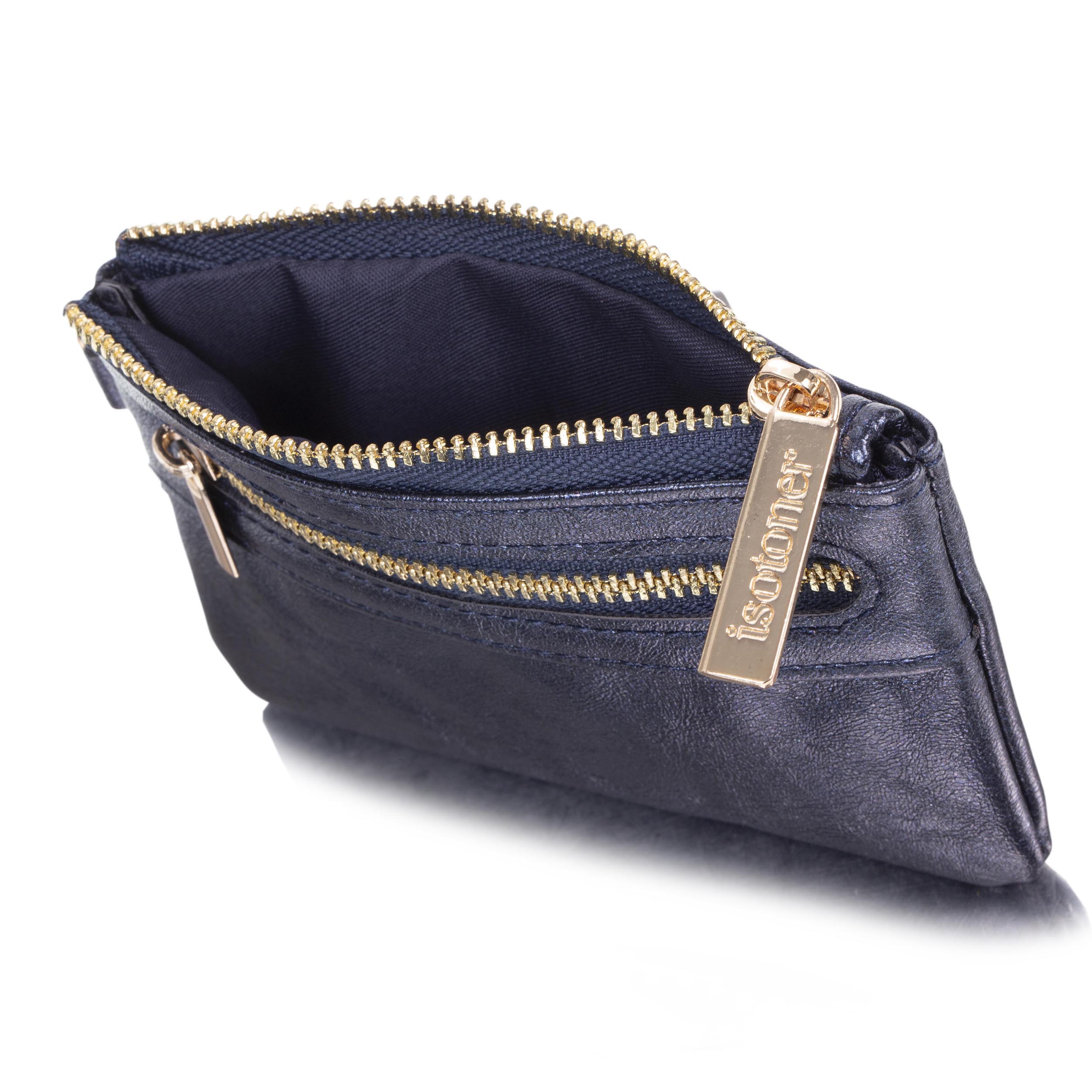 Isotoner vous présente sa nouvelle gamme de petite maroquinerie avec ce porte-monnaie pour femme métallisé de couleur Marine. Son jolie zip doré donne une touche d'élégance à ce porte-monnaie dans lequel vous pourrez ranger vos cartes et quelques pièces avec son format de 12 x 8,5 x 1 cm. Ce porte-monnaie zippé Isotoner est doté de la protection anti RFID piratage de cartes. La doublure présente sur ce porte-monnaie pour femme est équipée d'une couche de blindage qui sert à bloquer le transfert des informations numériques depuis la carte bancaire vers un scanner externe.