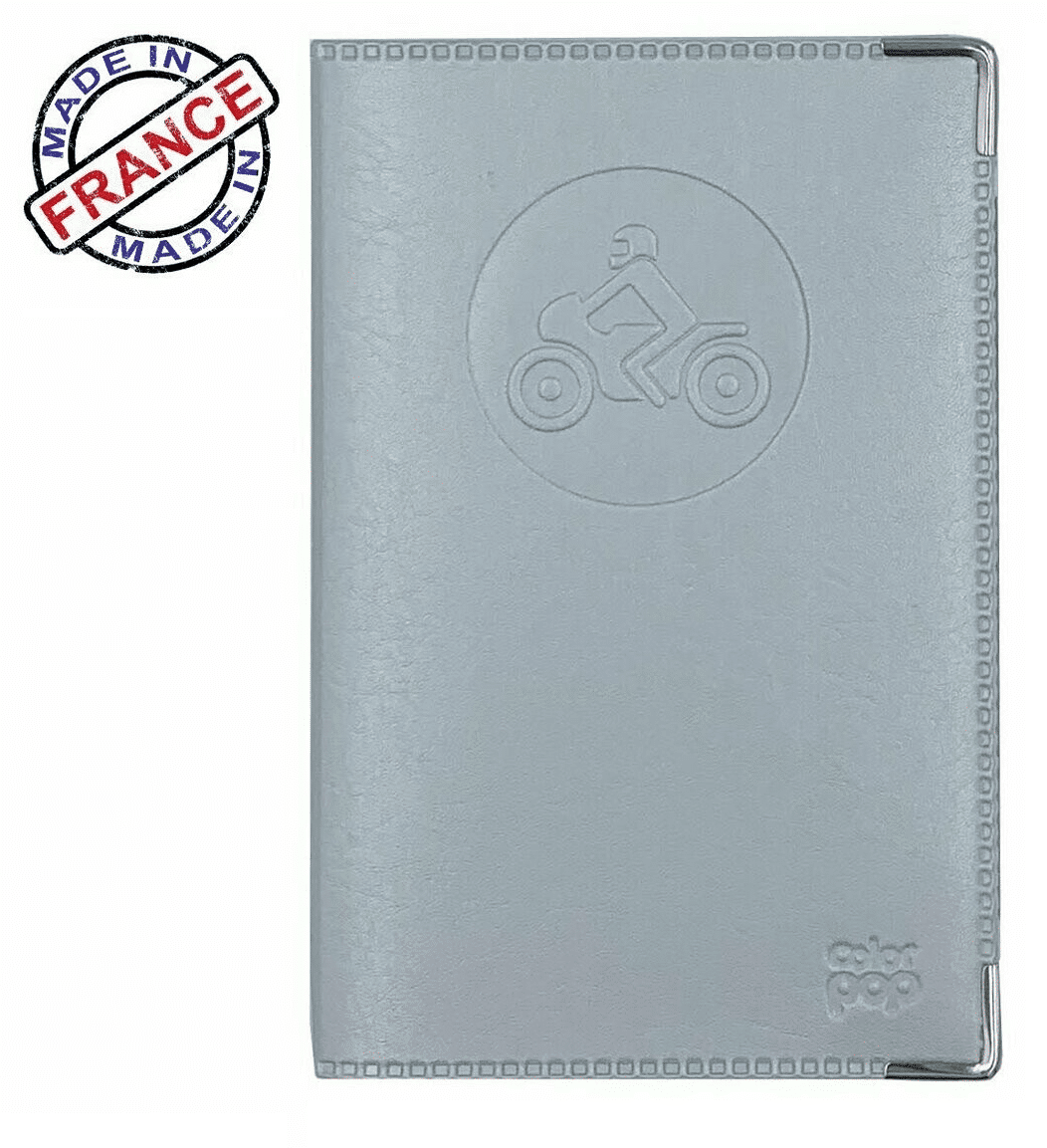 Porte papiers de moto gris argent étui petit permis + carte grise Fabriqué en France