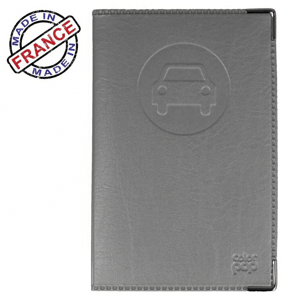 Porte papiers voiture gris argent étui petit permis + carte grise Fabriqué en France