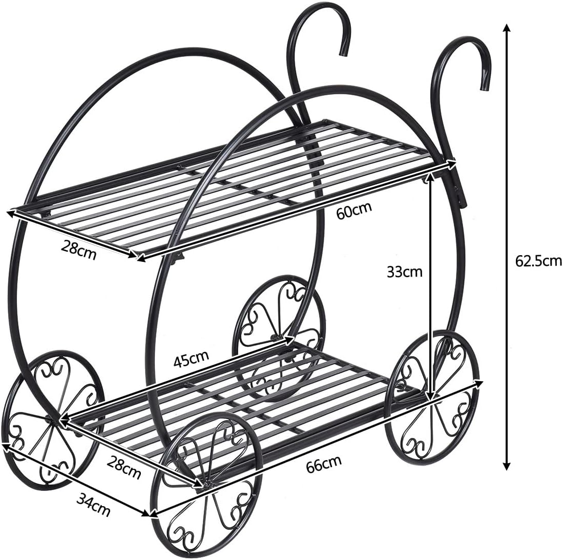 | Libellé | Porte-plante décoratif à 2 niveaux en forme de chariot, support de plantes avec structure robuste |