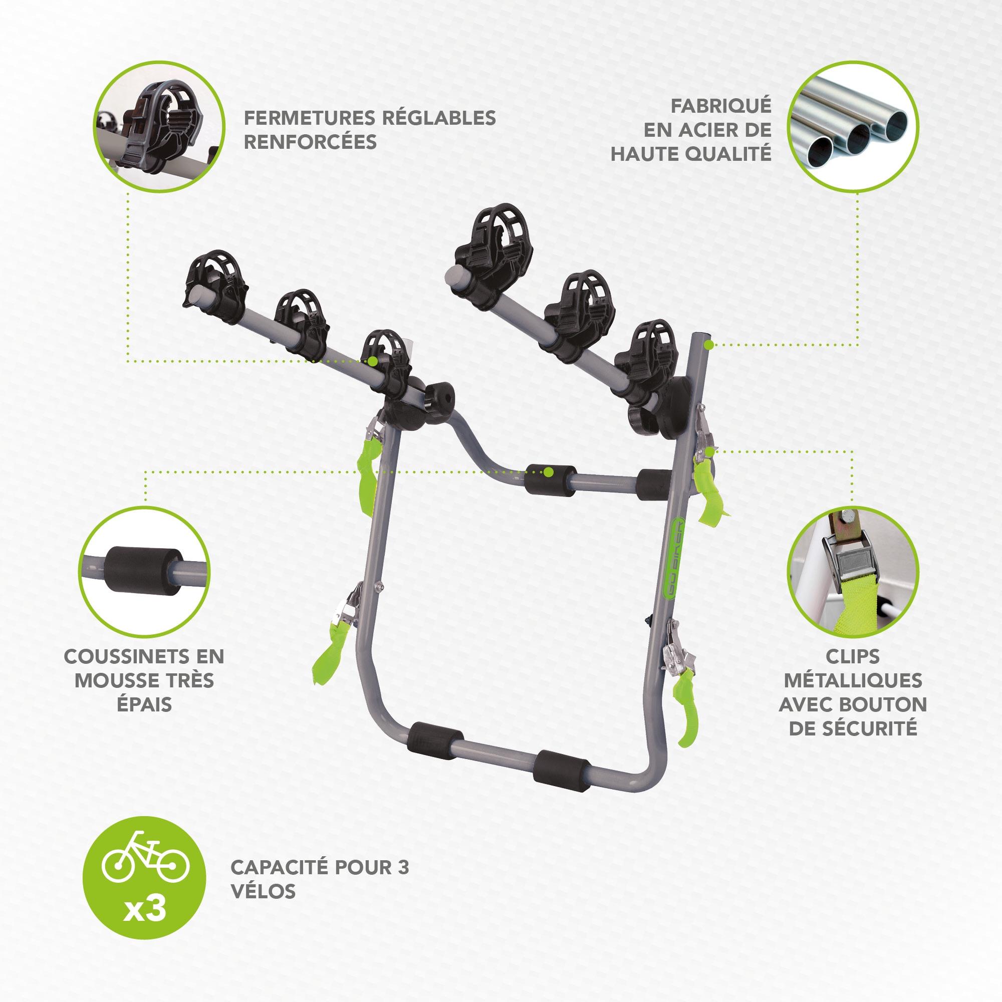 Porte-vélos GO BIKER Easy V3 Max avec sangles pour 3 vélos, cadre en acier, bras réglables, convient à to