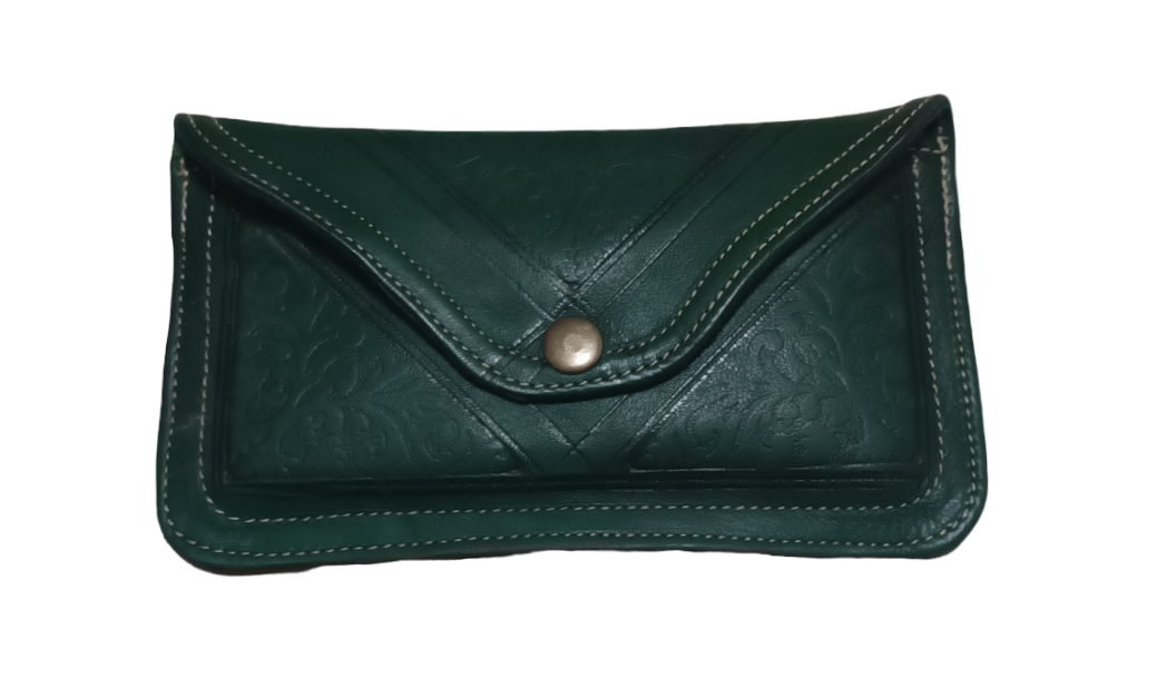 PORTEFEUILLE CUIR CHIC VERT - ARTISANAT ECOLOGIQUE