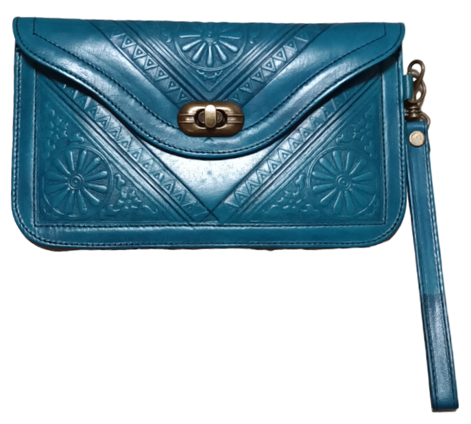 PORTEFEUILLE CUIR LUXE PREMIUM BLEU CIEL - ARTISANAT ECOLOGIQUE