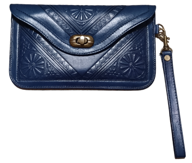 PORTEFEUILLE CUIR LUXE PREMIUM BLEU FONCE - ARTISANAT ECOLOGIQUE