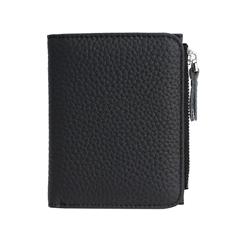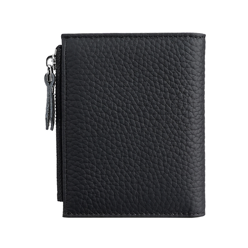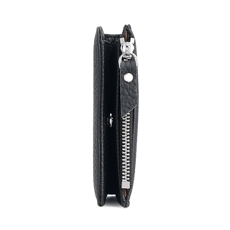 Portefeuille Homme Fin Anti-RFID avec Porte-Monnaie - Portefeuille Zippé en Cuir Véritable Black