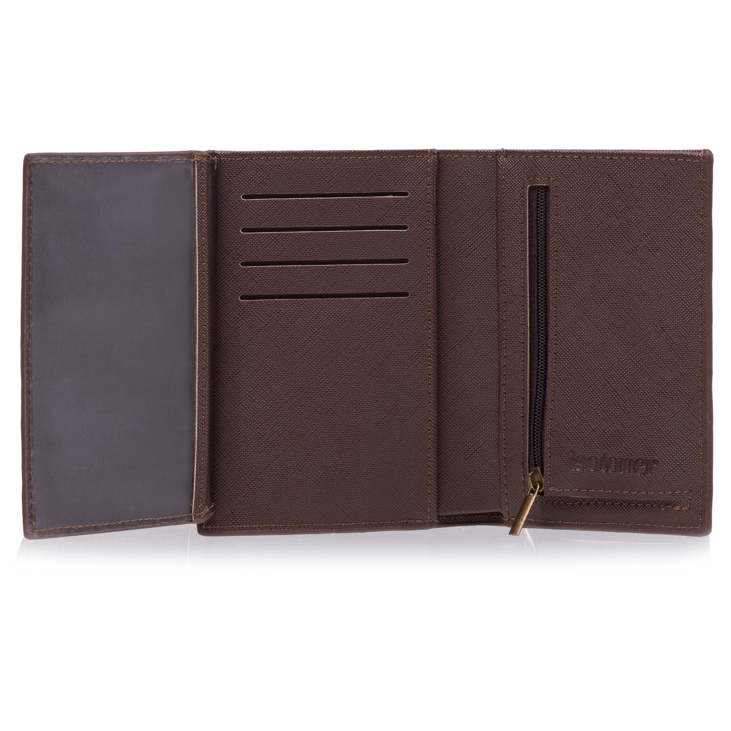 Cet élégant portefeuille pour homme de couleur Marron à trois volets vous permet de ranger vos cartes, billets, carte d'identités, papiers et pièces de monnaie grâce à ses multiples compartiments et sa petite poche avec bouton pression à l'intérieur du portefeuille. Avec sa jolie texture striée et son format compact de 13 x 9,5 x 2 cm, vous pouvez emporter ce portefeuille facilement n'importe en toute sécurité puisque ce portefeuille à trois volets est doté de la protection anti RFID piratage de cartes. La doublure de ce portefeuille pour homme est équipée d'une couche de blindage qui sert à bloquer le transfert des informations numériques depuis la carte bancaire vers un scanner externe.