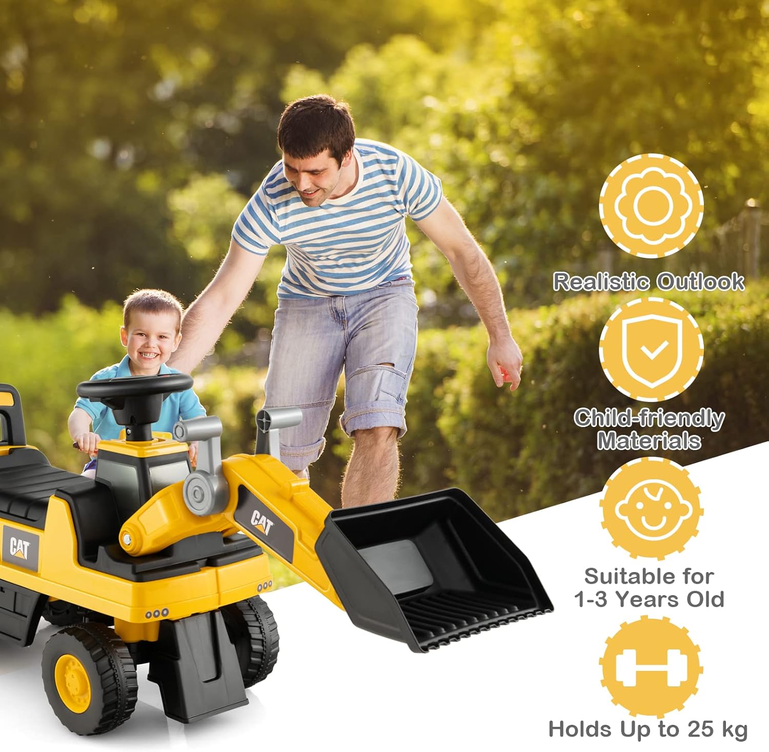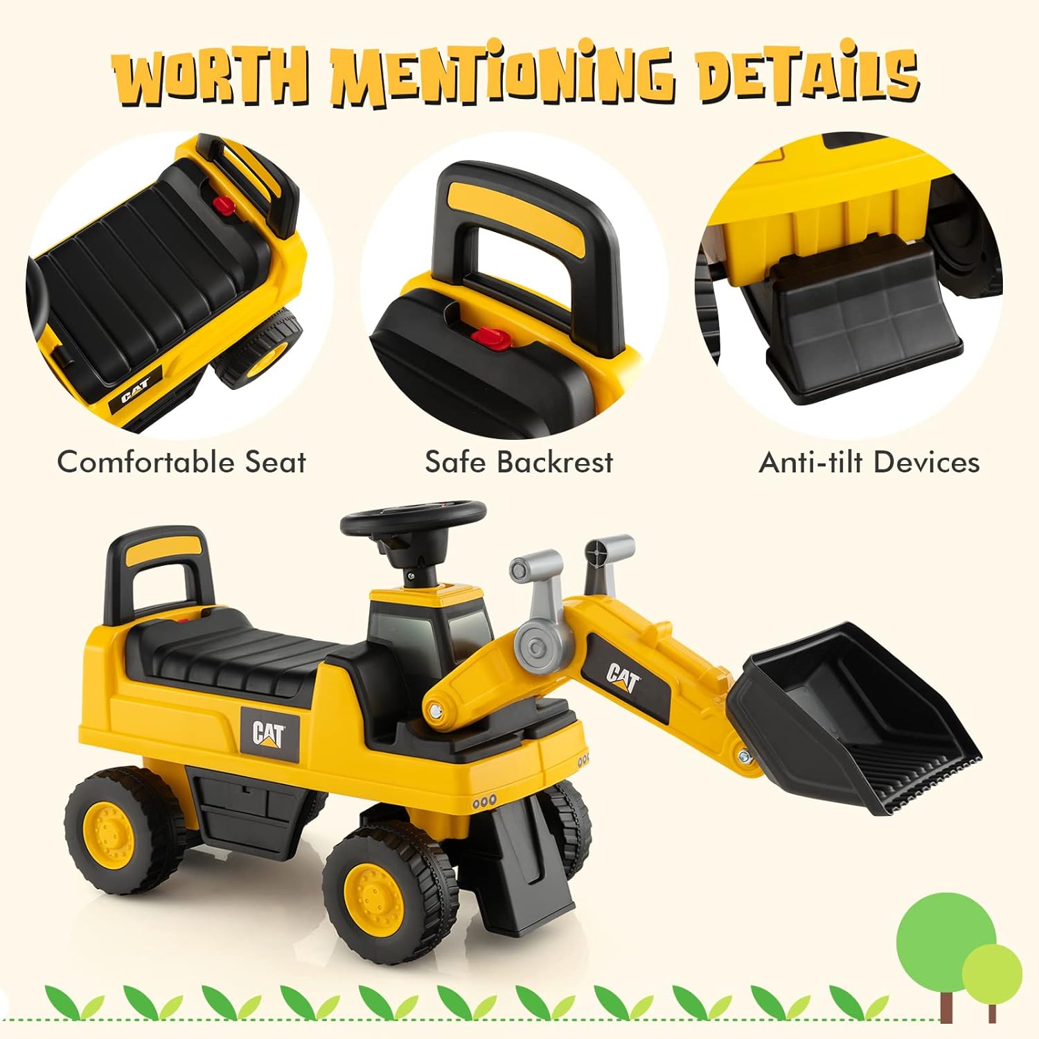 Notre bulldozer jouet est le cadeau idéal pour les enfants âgés de 1 à 3 ans et les accompagne tout au long d'une enfance heureuse ! Votre petit ingénieur peut s'installer confortablement sur ce bulldozer roulant et expérimenter le plaisir du jeu simulé en manipulant le godet avec aisance et liberté. Les roues antidérapantes et résistantes à l'usure permettent au véhicule de se déplacer sans encombre sur différentes surfaces. Et grâce aux matériaux sûrs et au dispositif anti-basculement, vous n'avez pas à vous soucier de la sécurité.