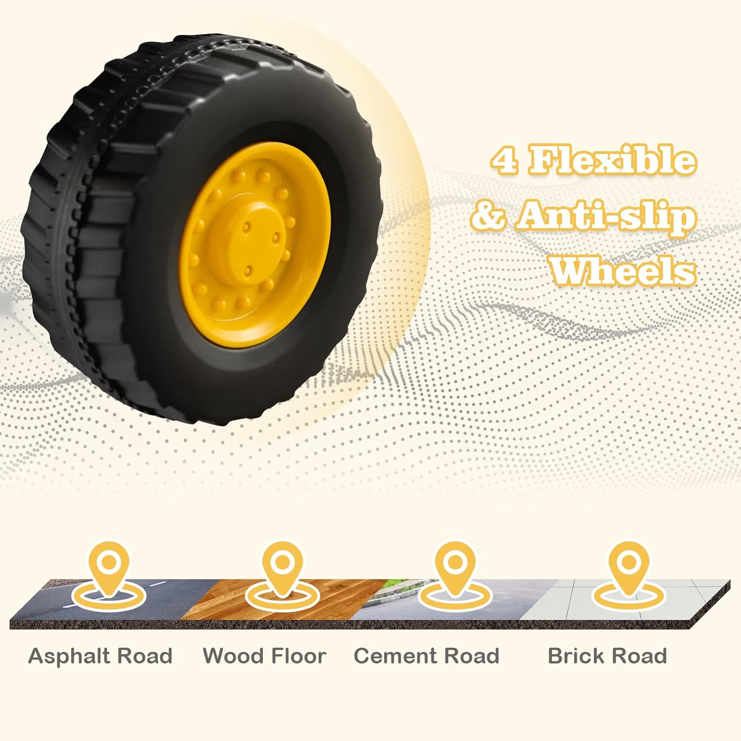 - Utilisation à l'intérieur et à l'extérieur : Équipée de pneus résistants, antidérapants, notre bulldozer peut être utilisé sur une grande variété de surfaces, telles que les planchers en bois, les routes en briques, les routes en béton ou les routes asphaltées.