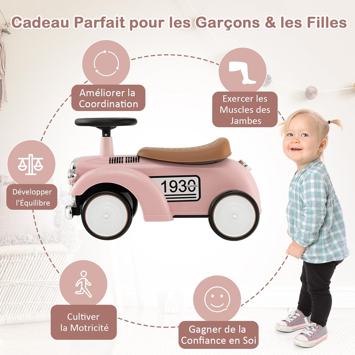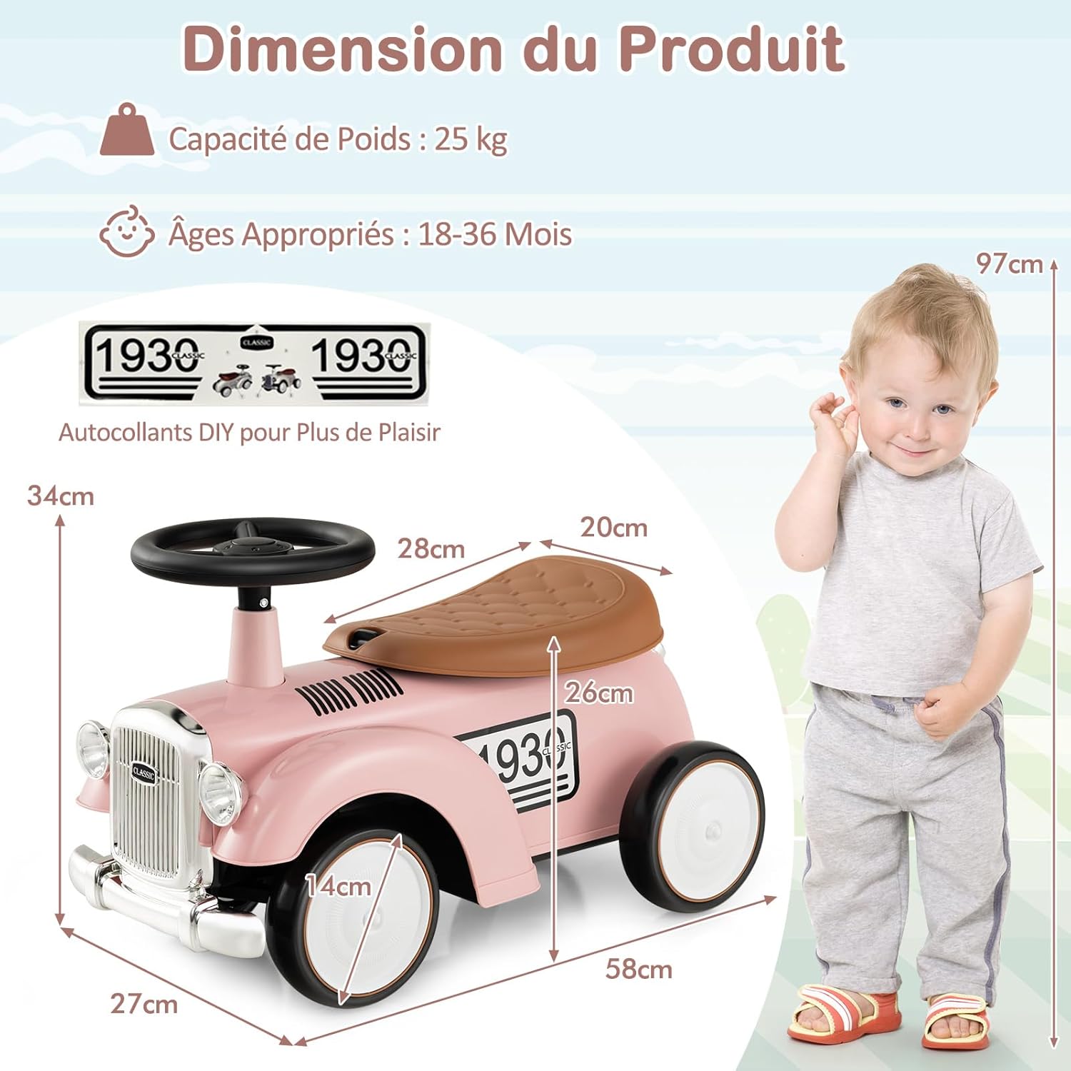 | Libellé | Porteur enfant style rétro avec espace de rangement sous siège, roues eva durables, véhicule jouet rose |