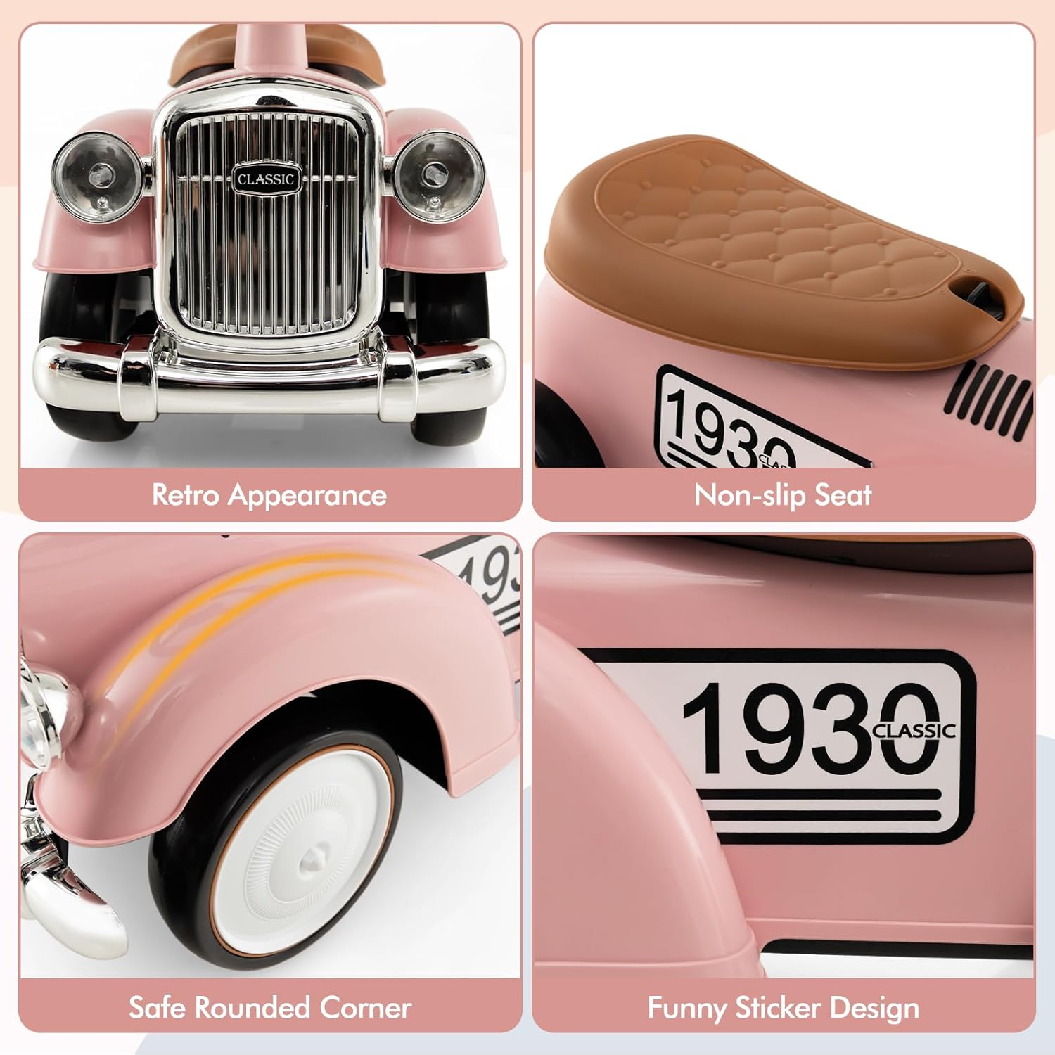 Porteur enfant style rétro avec espace de rangement sous siège, roues eva durables, véhicule jouet rose