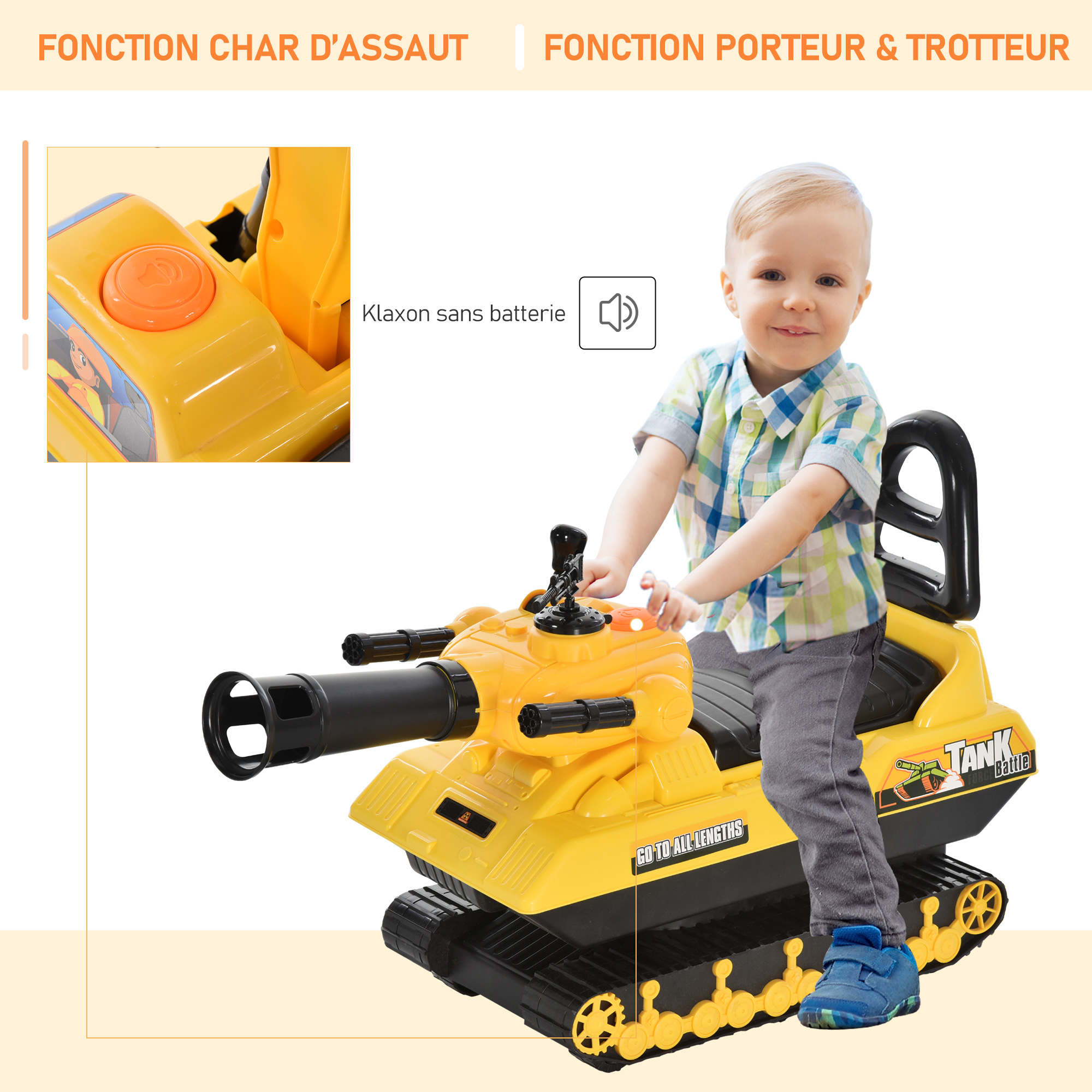 Porteur enfant voiture enfant tank coffre klaxon pistolet à balles jaune