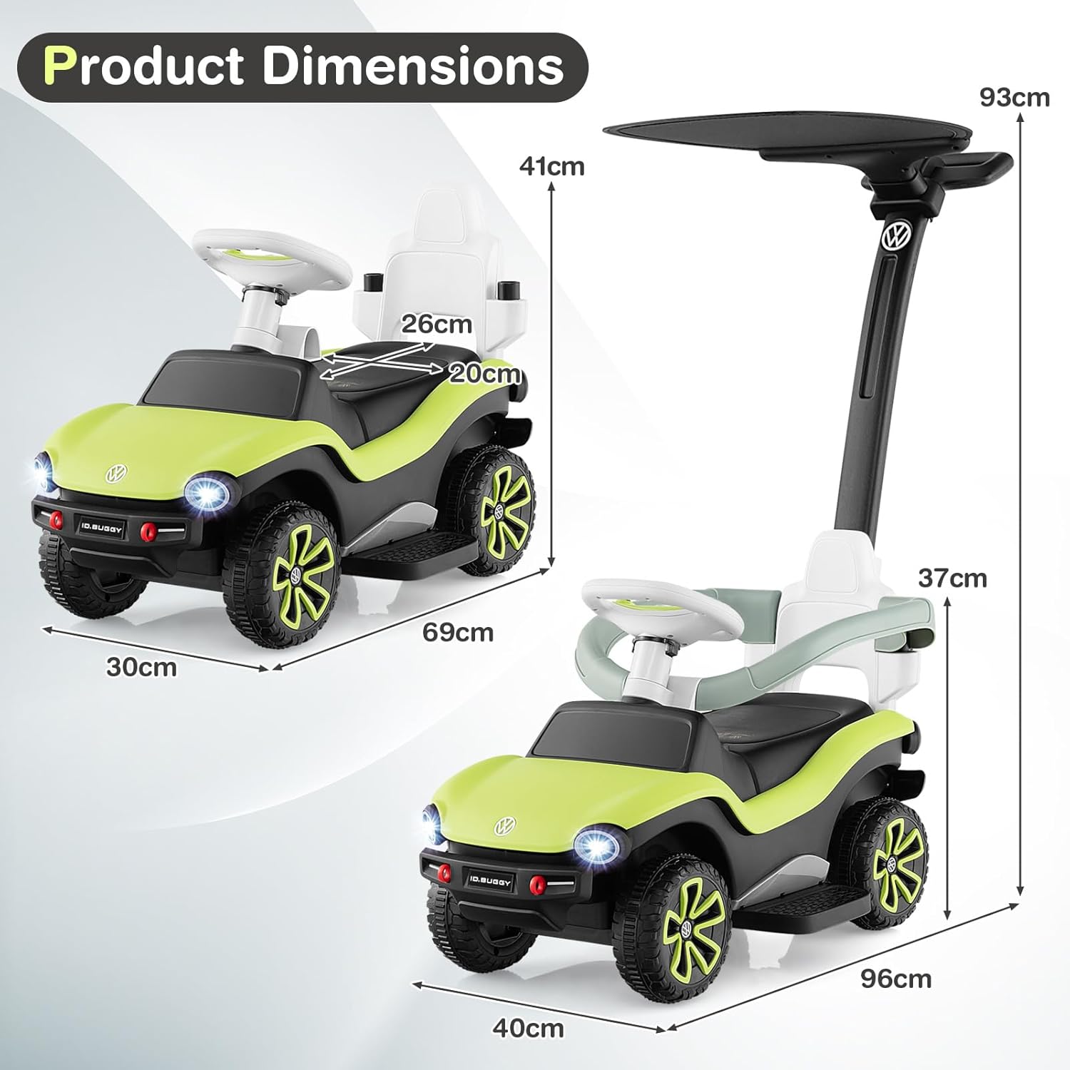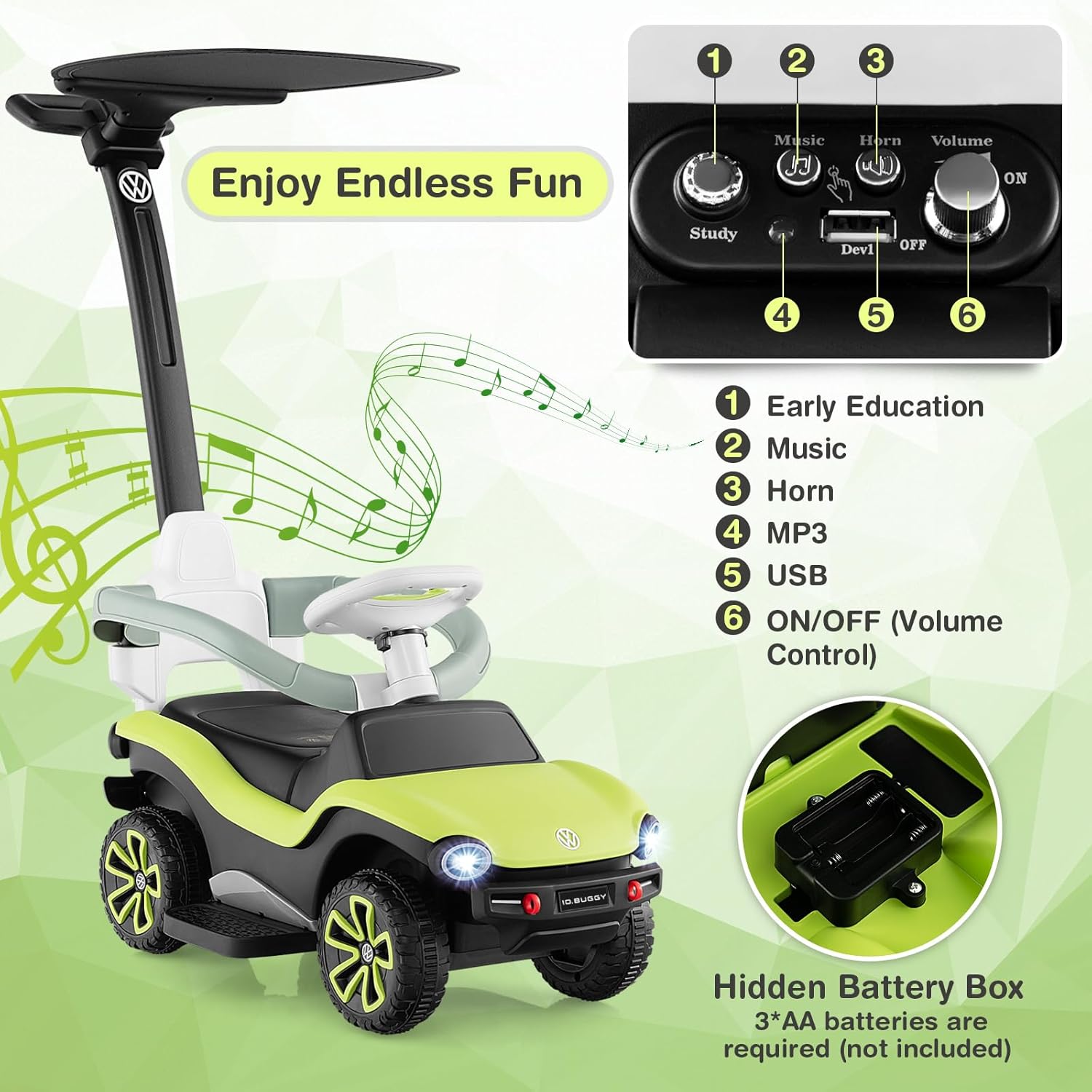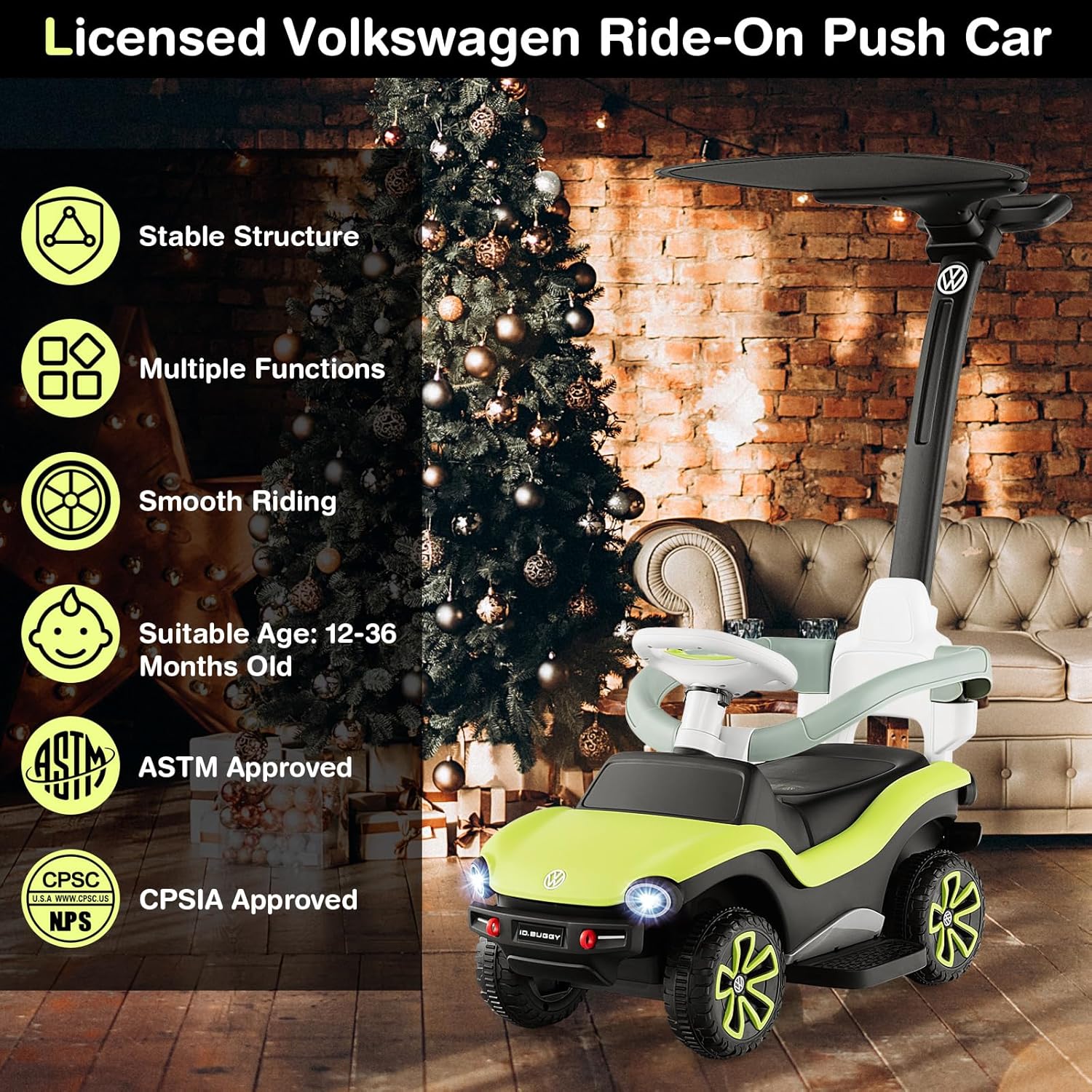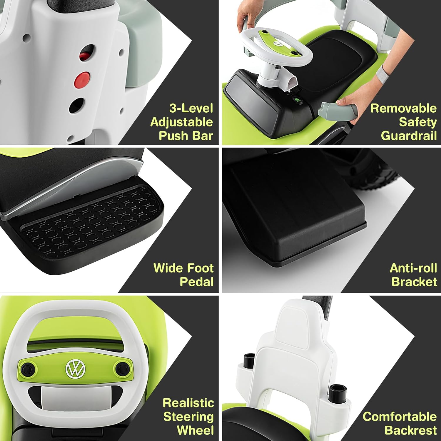 Porteur enfants 3 en 1 volkswagen chariot à pousser détachable & barrière de sécurité, trotteur 1-3 ans