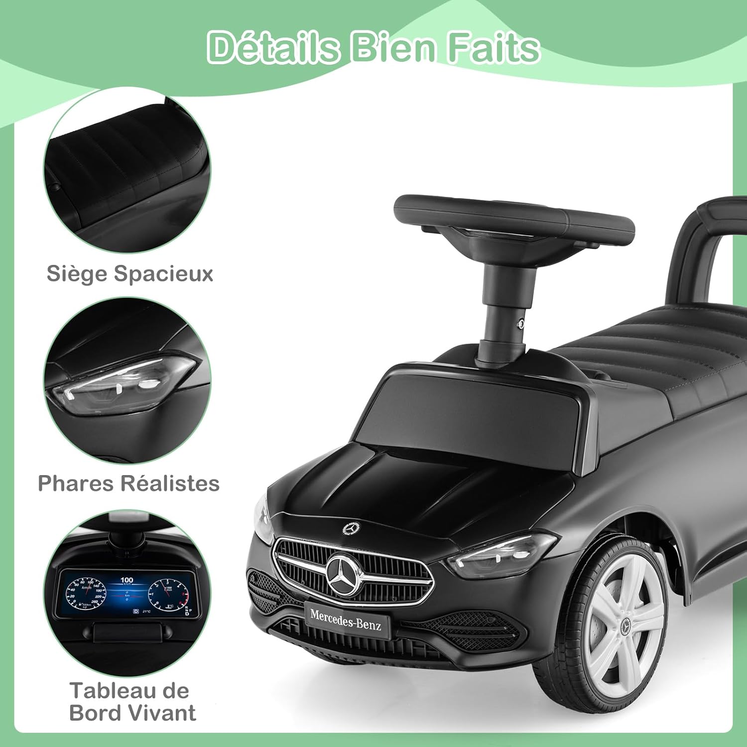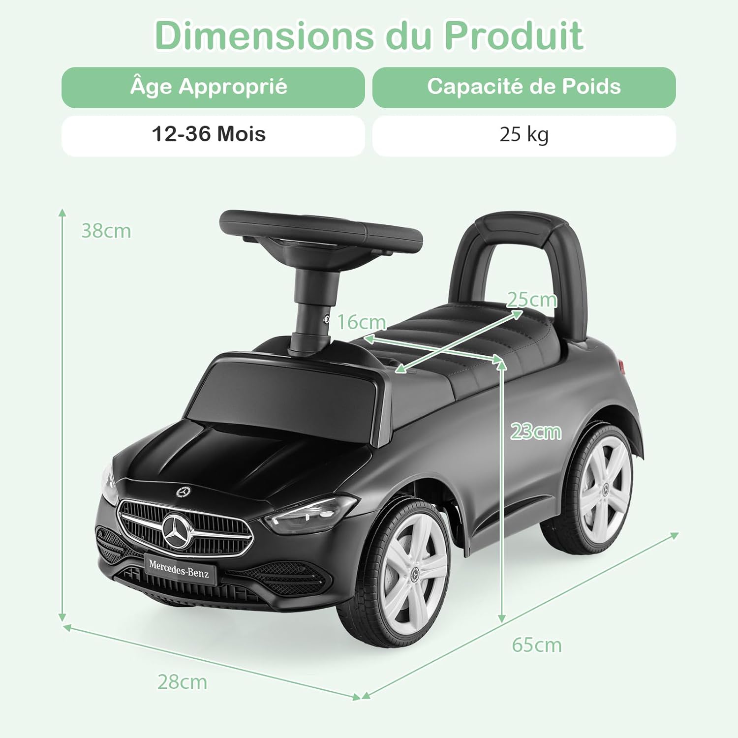 | Libellé | Porteur enfants, voiture à pousser mercedes-benz, volant, klaxon et bruit de moteur, rangement siège,noir |