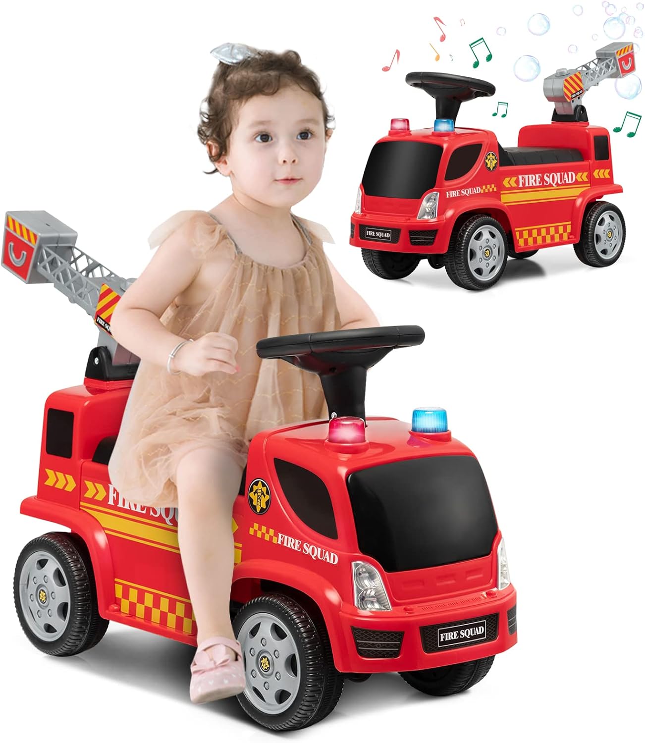 • Expérience de conduite réaliste: votre enfant peut simuler la conduite avec le volant et allumer les lumières et les boutons de musique pour une expérience de conduite réaliste. De plus, il est équipé d'un pistolet à jet pour tirer des bulles, ce qui correspond davantage à la nature d'un camion de pompiers et permet à votre enfant de se lancer parfaitement dans un jeu de rôle.