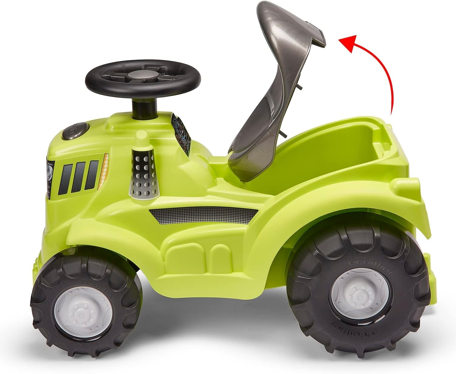Ce joli tracteur avec siège inclinable permet à votre enfant de ranger ses jouets dans le coffre et de les transporter partout avec lui. De 12 à 36 mois. Origine France Garantie.