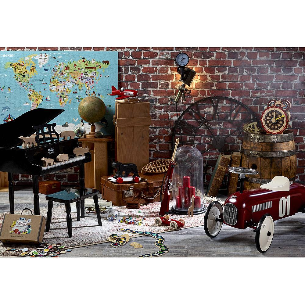 En voiture ! Ce porteur en métal au look vintage ravira les petits pilotes en herbe et trouvera sa place comme objet de déco dans un intérieur chic. Avec ses grandes roues en caoutchouc (silencieuses) et son volant directionnel, les bout’choux pourront se déplacer en toute sécurité et apprendre à coordonner leurs gestes. Hauteur de l’assise : 28 cm - Deux positions de siège possibles